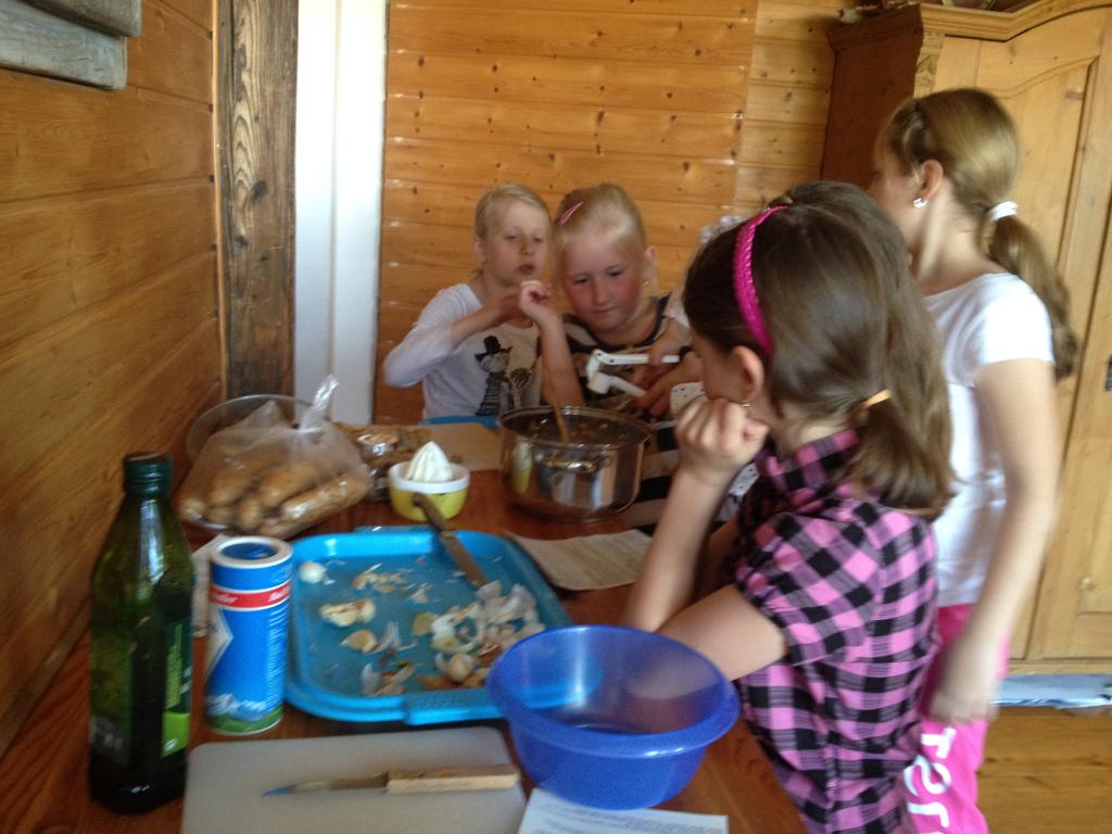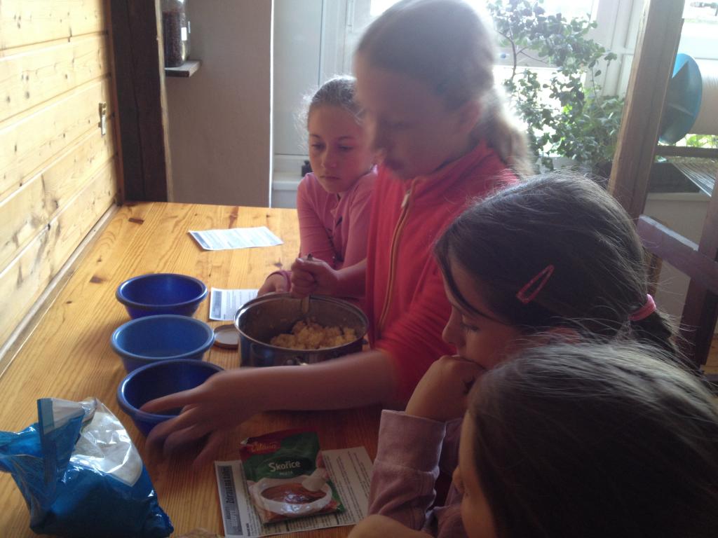 Poté se rozdělily do skupinek, dostaly recepty a pustily se do práce. K dispozici měly všechny potřebné potraviny i kuchyňské potřeby.