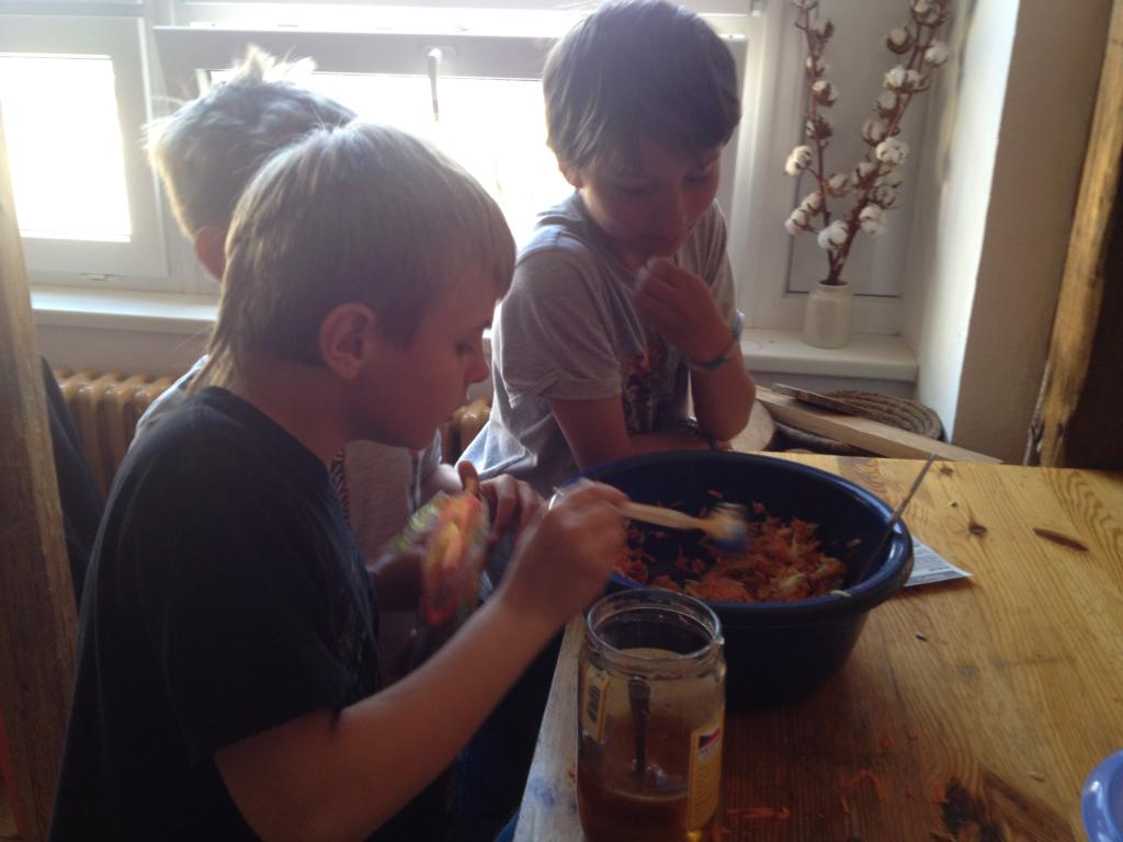 Všechny děti se zapojily s přípravou receptu a nakonec nechyběla vzájemná ochutnávka :-).
