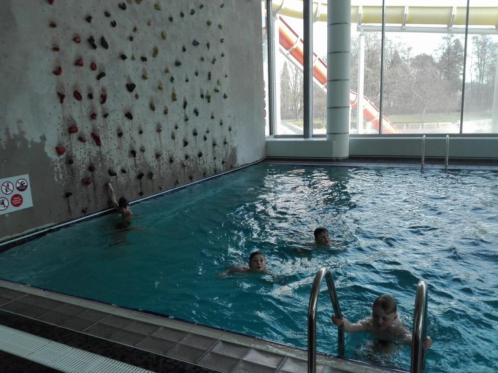 v začátku dubna jsme stihli v rámci plavání navštívit aquapark, a vzhledem k tomu, že jsme ho měli téměř celý pro sebe, jsme ho důkladně využili. Také nás navštívil maskot Bovýsek a zjišťoval, jak si pamatujeme názvy exotického ovoce, které jsme ochutnávali v únoru.