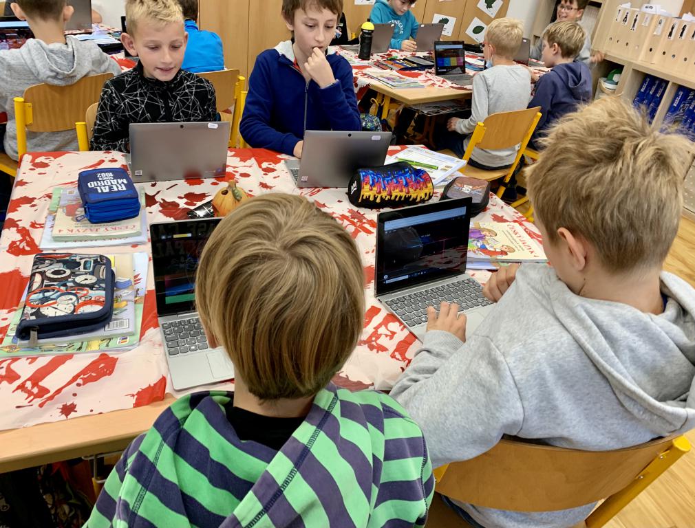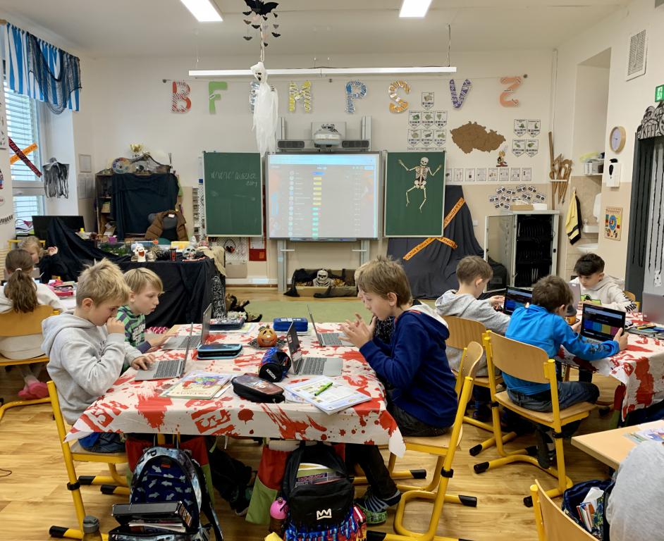 Po podzimních prázdninách jsme se ve škole sešli rovnou na snídani. Třídnickou. Probrali jsme třídnické záležitosti, veškeré noviny a mohli jsme se strašidelně učit. Tento školní rok nám ve třídě přibyla dokovací skříň s tabletama, na které jsme se moc těšili. Po jejich nastavení jsme se do toho mohli konečně pustit.