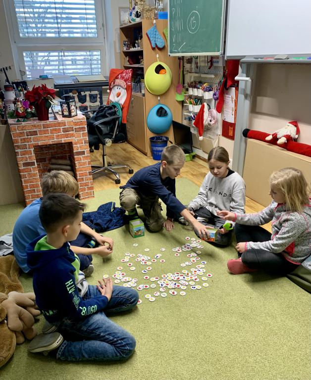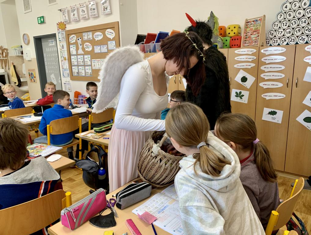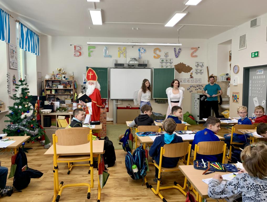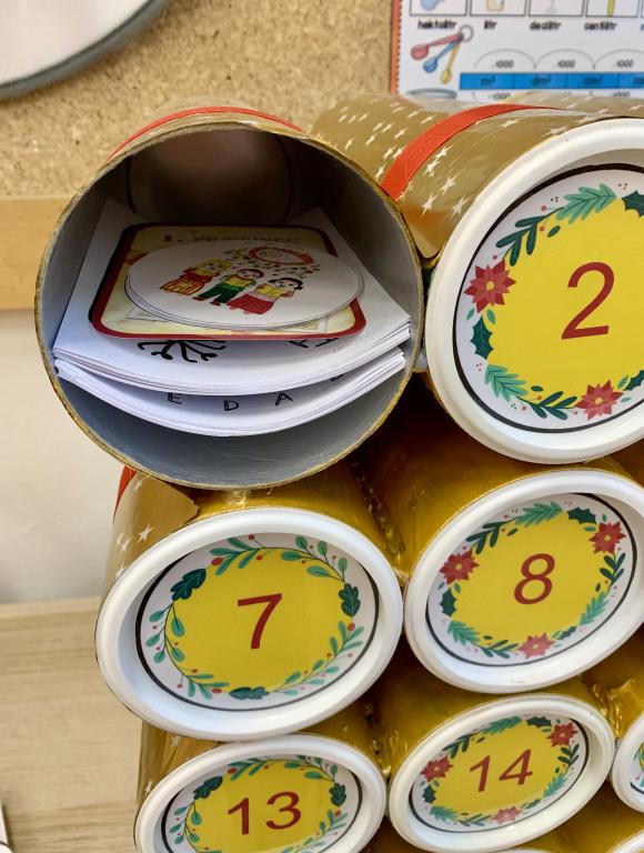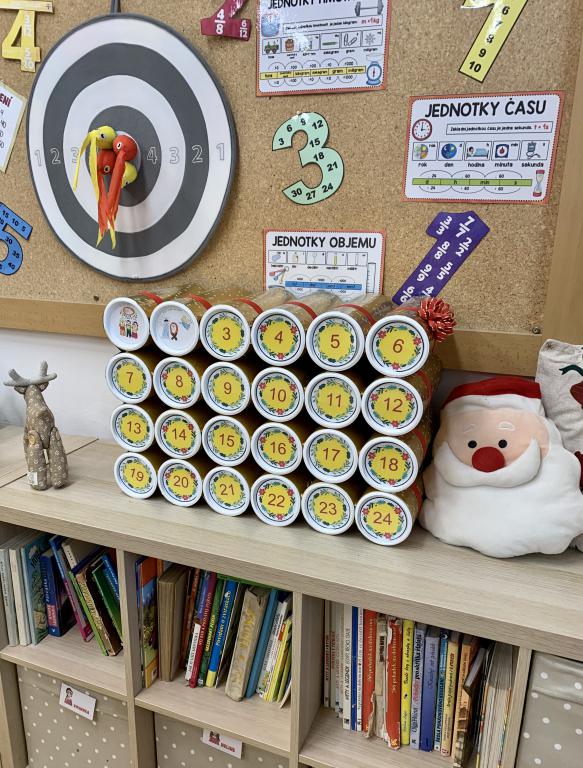 Hned při pondělí jsme se první hodinu otestovali a pozitivní jsme měli jen náladu! Ještě aby ne! Čekala na nás adventně vyzdobená třída a plný adventní kalendář, který sliboval zábavu. Každý den si otvíráme příslušně označené "okénko", které obsahuje kartičky s povídáním o tradicích. Už jsme si přečetli o adventním věnci a jeho barvách, proč se železné neděli říká železná, vysvětlili jsme si pranostiky a proč holky kdysi koukaly dírou v ledu do rybníku, ťukaly na kurník a proč se louskají vlašské ořechy.