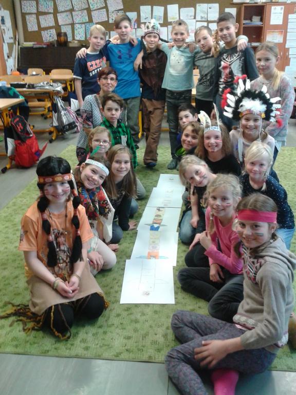 Povídání, aktivity, pantomima, to vše nás provázelo během úžasné atmosféry středečního posezení s indiánskou tematikou. Výsledkem byl třídní totem, který nám bude zdobit naši třídu. Děkujeme paní psycholožce Kristýnce za prima nápady pro třídu. :-)