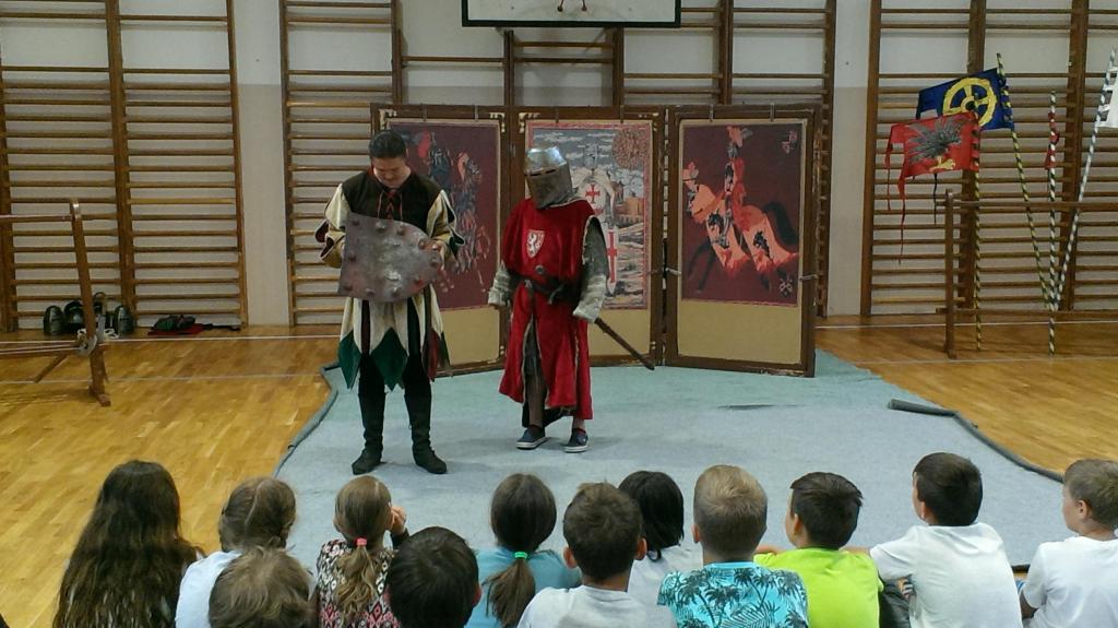 Poslední týden školy jsme zahájili divadelním představením skupiny historického šermu ,,PERNŠTEJNOVÉ" z Pardubic. Svým představením nás přenesli do doby gotické - vlády rodu Lucemburků. Žáci se stali na chvíli pážaty a rytíři, měli možnost si vyzkoušet rytířskou zbroj, zahrát si rytířské hry, zúčastnit se rytířského turnaje a dokonce jsme byli svědky souboje dvou rytířů i pasování na rytíře. Bylo to super! /Vaše paní učitelky z 1. stupně/