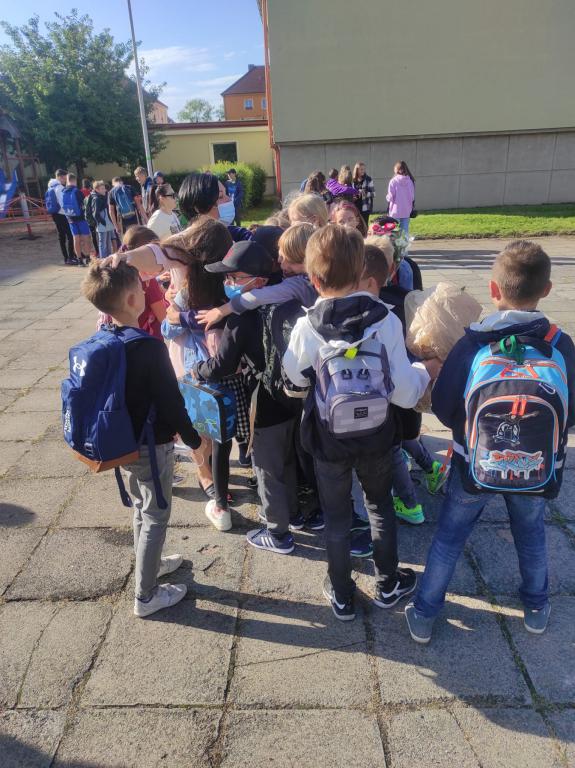 Po prvňáčcích jsme přišli na řadu my. Před devátou hodinou dopolední jsme se všichni přivítali před školou a společně došli do naší nové třídy o patro výš. Už jsme přeci jen na prvním stupni "skoro mazáci".