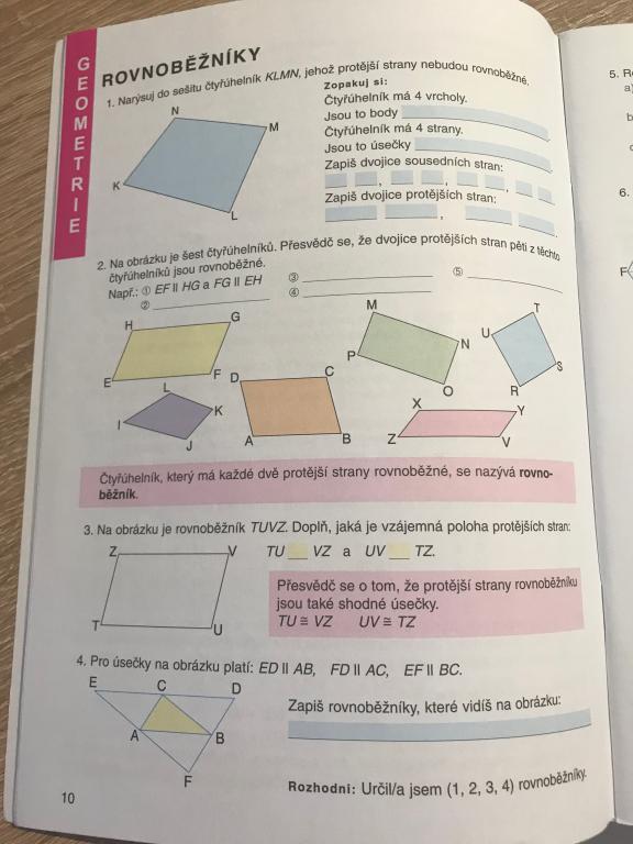 - vyber si jeden rovnoběžník a u něj napiš, které strany jsou rovnoběžné