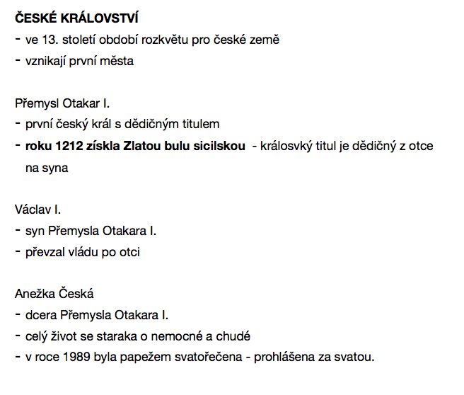 uč. s. 22 pokračování panovíků z českého království. Přečti si a během týdne se podívej na videa s Českým lvem (29, 31, 31).