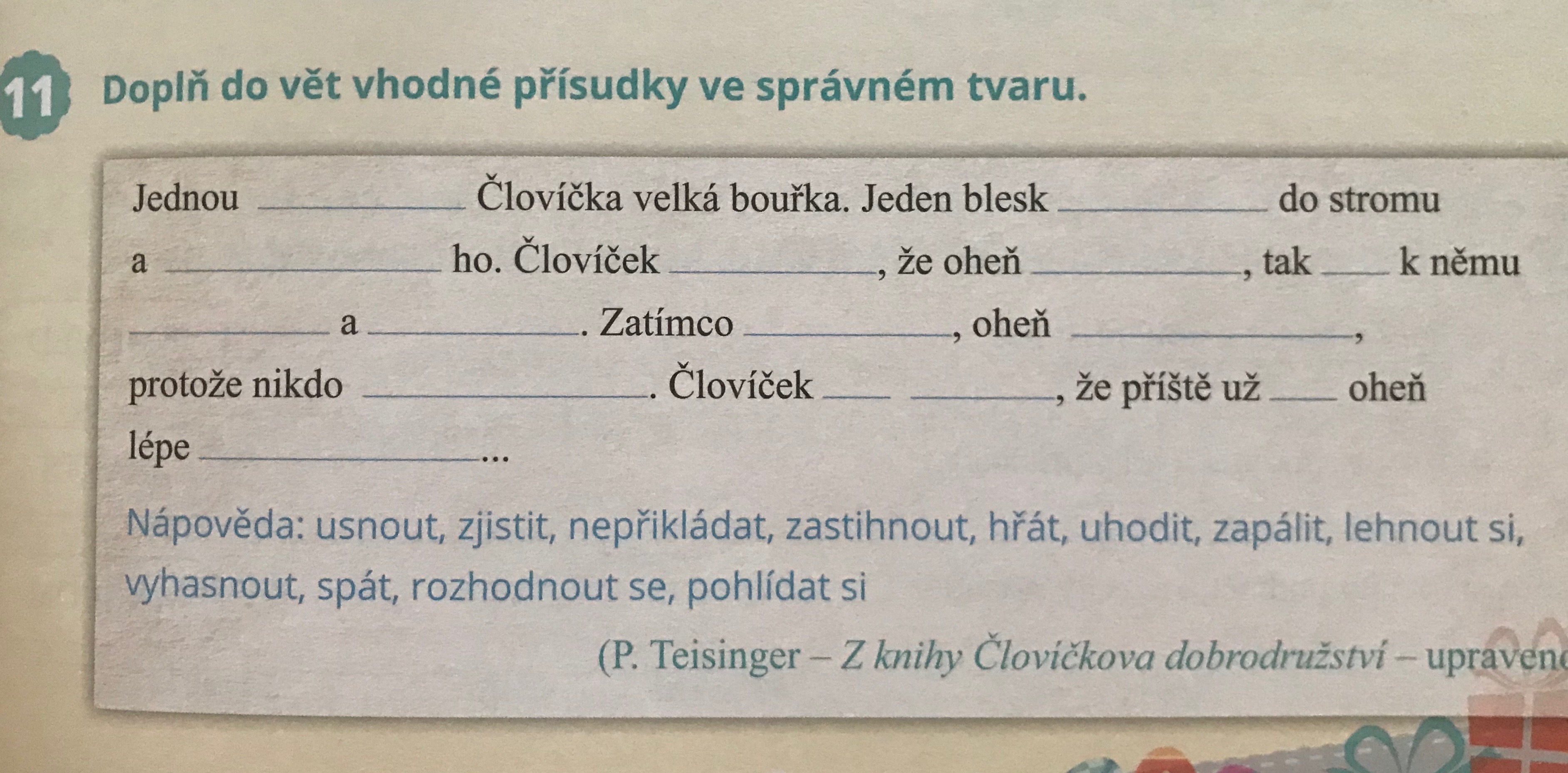 - procvičování podmětu a přísudku: