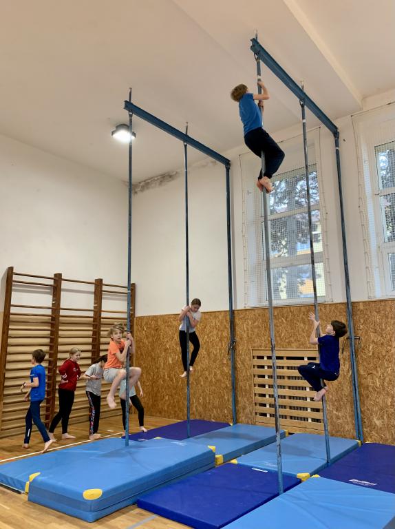 Trénujeme šplhání na tyči a gymnastické dovednosti, které se nám budou hodit nejen za rok při talentovách do sportovní třídy. Jak to tak vypadá, uteče to rychle. ![]()