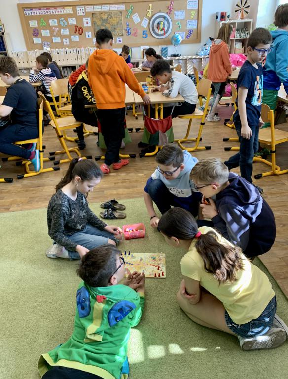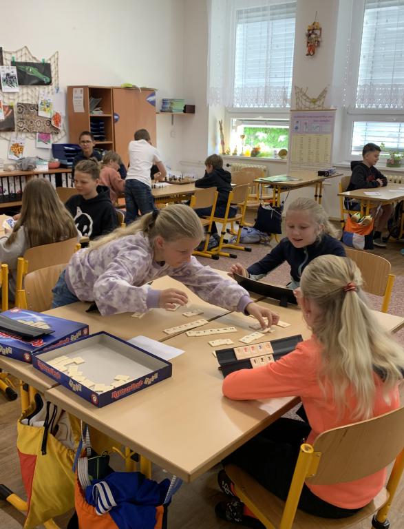Společný turnaj čtvrťáků z Benešovky v "deskovkách" se odehrál o týden později. Ve čtvrtek 4. května 2022 hned první hodinu odstartovalo klání ve třídách 4.A, 4.B a 4.C. Na dvanácti stanovištích děti hrály hry Člověče, nezlob se!, pexeso, věž, kvarteto, Brain Box, šachy, piškvorky, Rubicum, Jen počkej, zajíci!, Černý Petr a Tik tak bum!