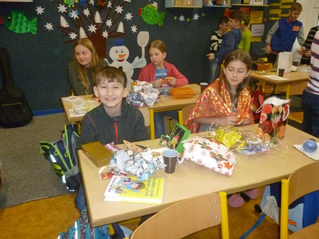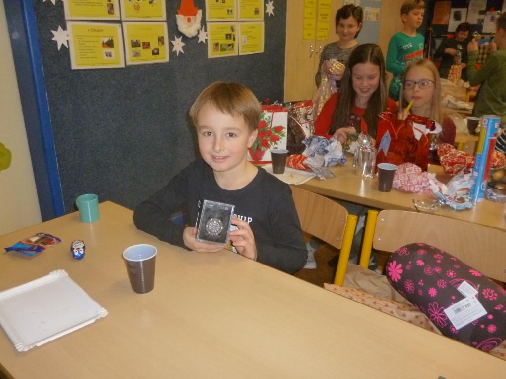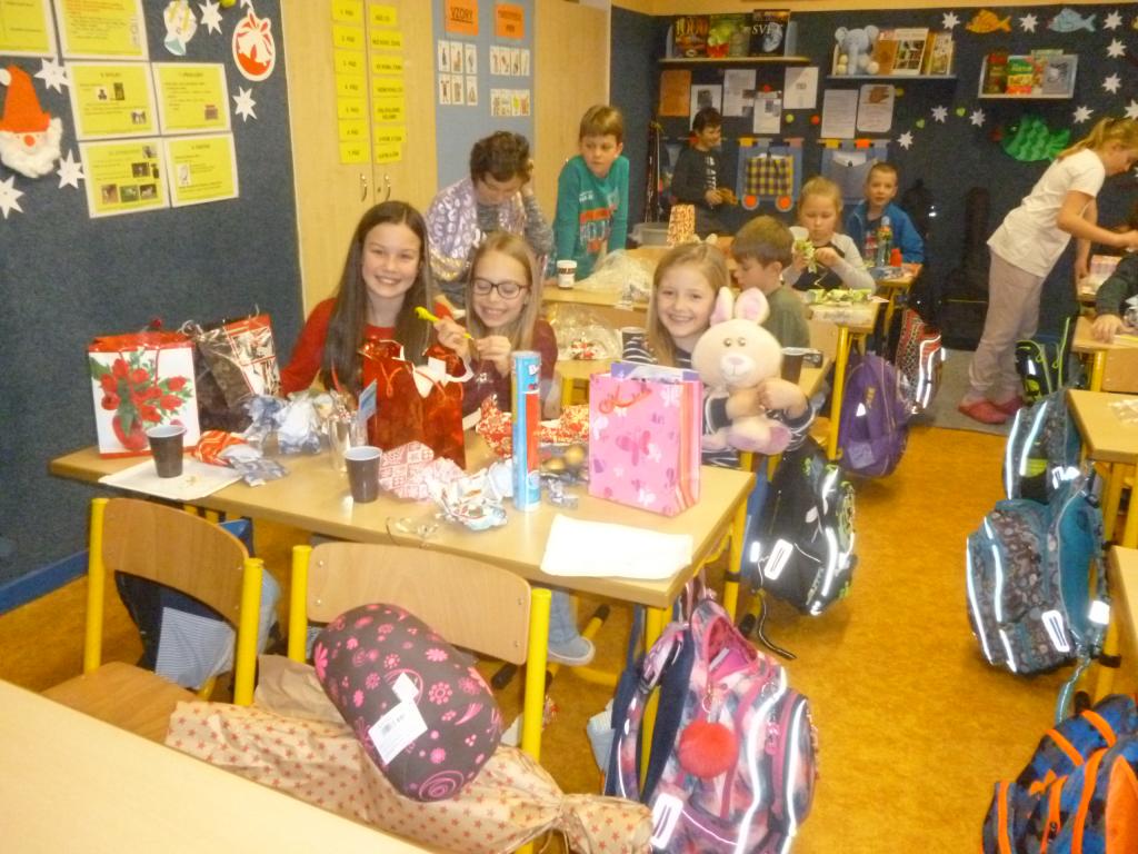 Krásné vánoce, štěstí a zdraví přeje dětem i rodičům paní učitelka. Dnes jsme si to moc užívali a bylo to fajn. Pěkný vánoční koncert nám také připravil Martin, Mareček, dále Dorotka, Anetka B., Anetka H. Moc děkujeme. Děti se těšily z dárků spolu s paní učitelkou. Ostatně se můžete podívat na fotografie.