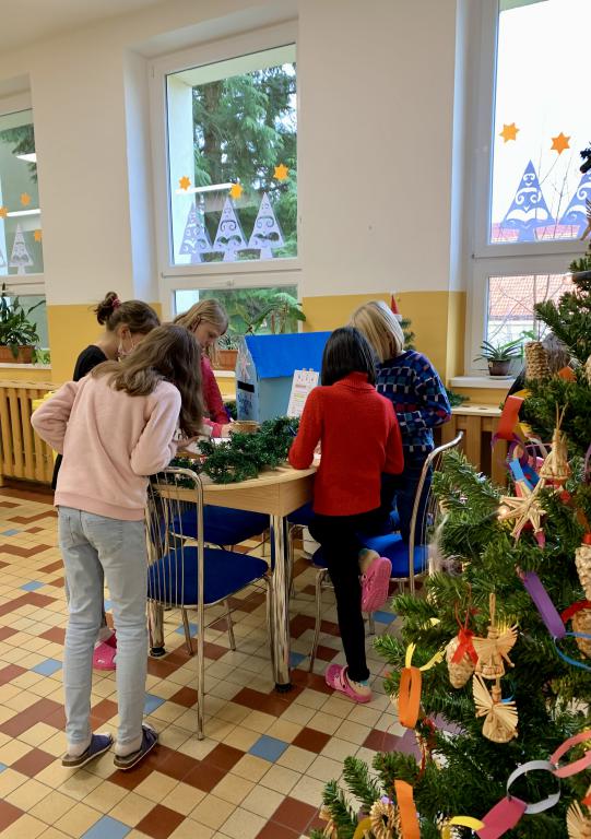 Vánoce jsou obdobím, kdy si lidé jsou blíž. Snaží si vzájemně udělat radost, rodiny se navštěvují, přátelé spolu tráví čas a také si posíláme přání. Na naší škole jsme měli také takovou možnost. Česká pošta sem totiž umístila svou pobočku. Pošta Benešovka 1. patro přijímala necelé dva týdny do schránky přání a pozdravy od dětí pro děti, učitele, školníka... zkrátka pro kohokoli z naší školy. Krásnou vánoční schránku vyrobila 9.C. Přání doplňovali všichni, kteří měli chuť a čas při výtvarné výchově. ![]()