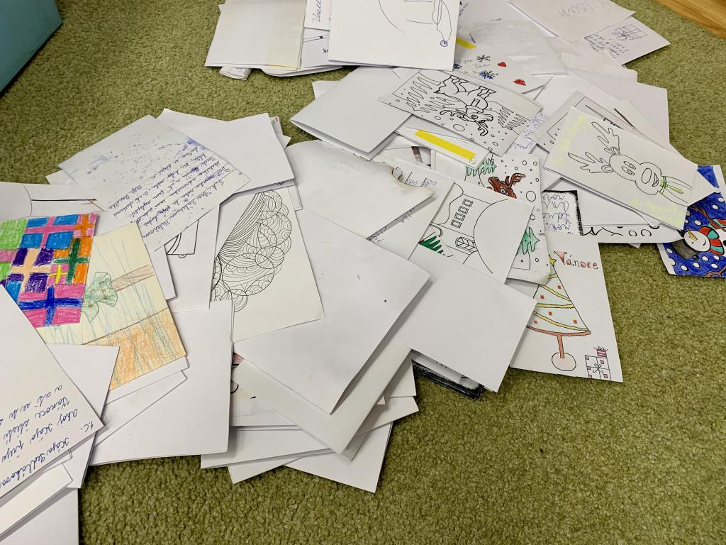 Přání se v konečném součtu sešlo víc než 200 a pošťáci ve stejnokrojích ze 4.A měli plné ruce práce s jejich doručením. Snad adresátům uděly vzkazy v nich radost.