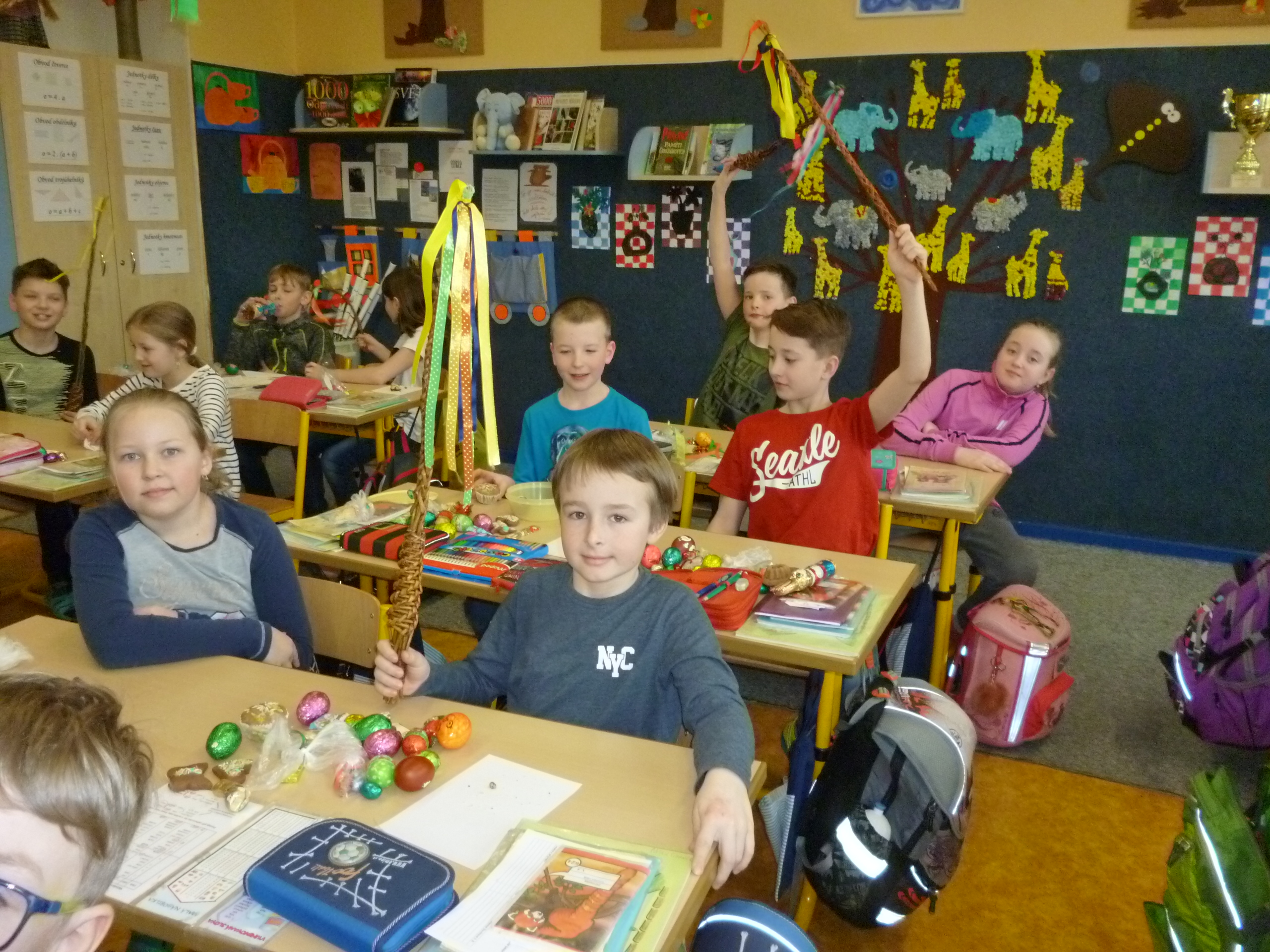 Již počtvrté se slaví v naší třídě 4.A velikonoční svátky. Děvčátka sice brblají, že budou vyšlehány, ale nakonec jsou rádi a poctivě pro chlapce chystají sladkou koledu a vajíčka. Na nikoho nezapomínají. Chlapci zase zajistí, že děvčata budou krásná, svěží a plná energie i s paní učitelkou. Všem přeji krásné velikonoční svátky a plno vykoledovaných vajíček.