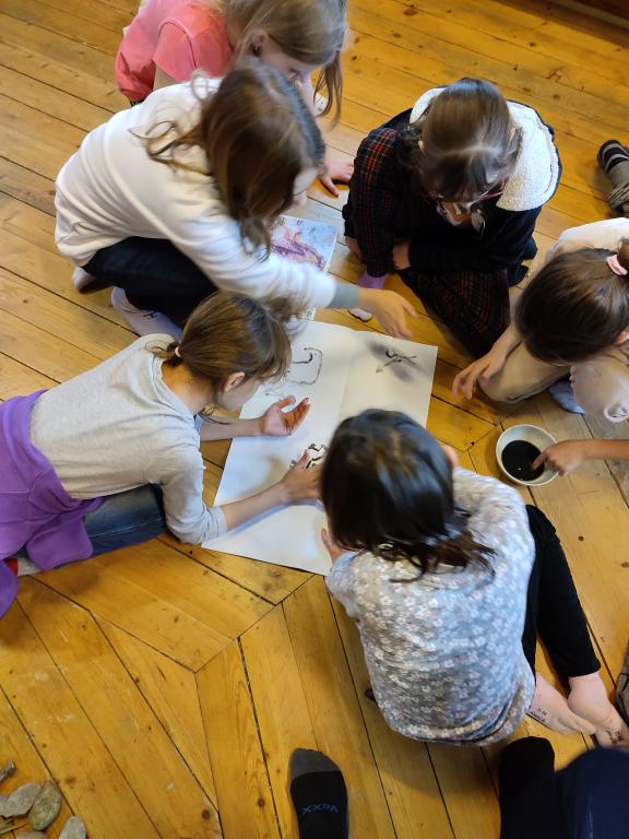 Od tohoto školního roku máme nový předmět vlastivědu, ve které se učíme naše dějiny. Hned od září jsme začali časovou přímkou. Od října jsme se ocitli v pravěku, proto jsme v Ekocentru Paleta navštívili program "Lovci mamutů." Na chvíli jsme se stali pravěkými lidmi. Vyzkoušeli jsme si malování na stěny jeskyně, získávání ohně nebo lov na mamuta. Vzhledem k naší šikovnosti, bychom dlouho živi nevydrželi. :-)