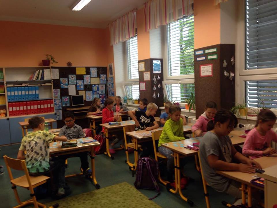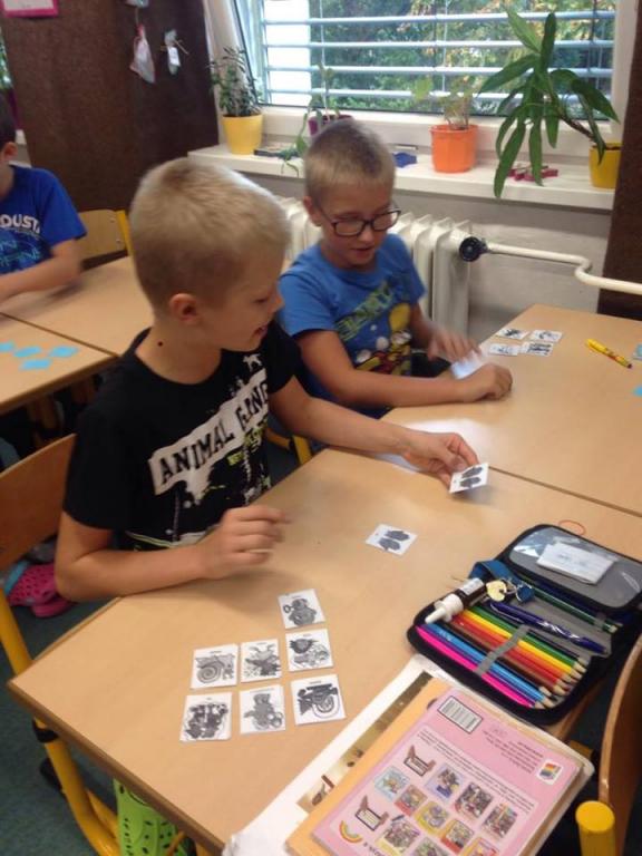 Jak pravil prakolega Jan Amos - škola hrou. Takové Pexeso děti baví a nenásilně procvičí co je třeba. Dnes mělo premiéru to s vyjmenovanými slovy. :) V "zápalu boje" jsme někdy trochu hlučnější. Našim novým společníkem se nejen proto stal zvoneček Tišínek. I za sloníka pro štěstí děkujeme :)