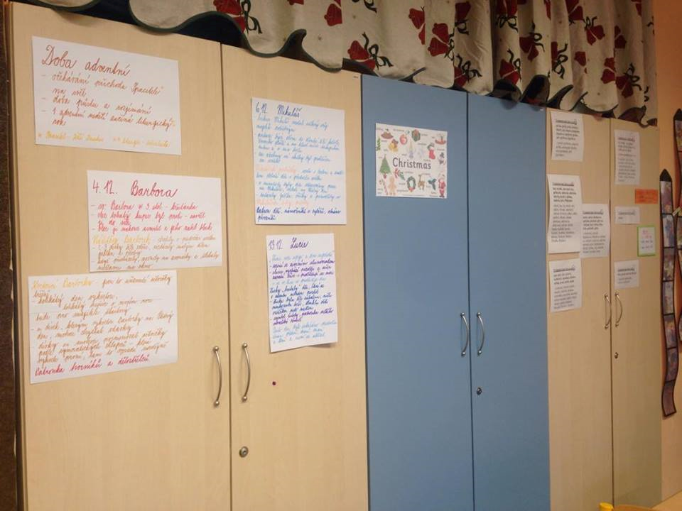 Vánoce se blíží každým dnem. Je to znát i v naší škole i třídě. Děti z druhého stupně si připravili vánoční pásmo koled. A my doplňujeme výzdobu třídy našimi výrobky. Vánoční řetěz jsme tvořili z kelímků od čajových svíček. A adventní kalendář už bude také pomalu celý otevřený. :) Přejeme krásné prožití vánočních svátků, užijte si prázdniny a v novém roce se opět uvidíme.