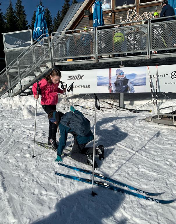 Posledně jmenovaní bohužel s námi na běžky nemohli a tak zůstali pod dohledem paní učitelky Hladíkové v hotelu a okolí. Také si ale udělali menší výlet do centra Benecka, k vlekům a zpět. ![]()