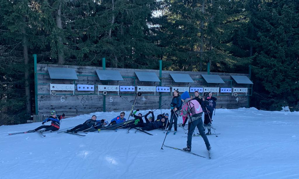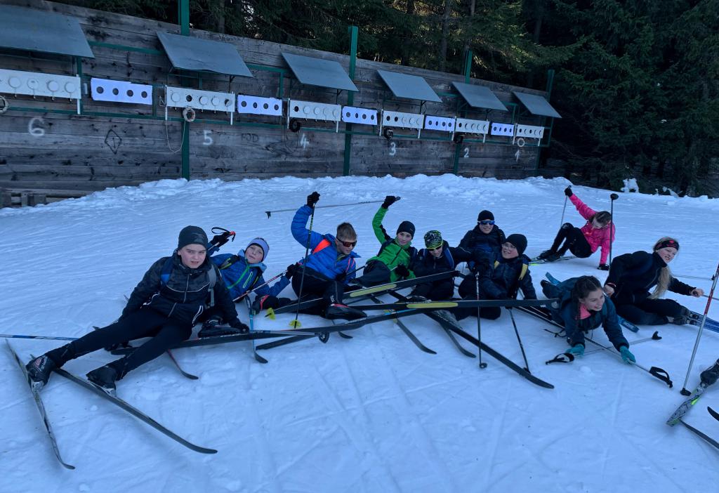 Hned u ní byla biatlonová střelnice. Chtěli jsme se společně vyfotografovat. A aby to nebyla prý nuda... řekla paní učitelka Doubravová, že máme udělat nějakou bláznivou fotku, ať je to legrace... Byla, ale neplánovaná... Pro obecenstvo jsme předvedli ukázkový "domino efekt" a tak nějak jsme všichni ze skupiny rychlejších popadali.