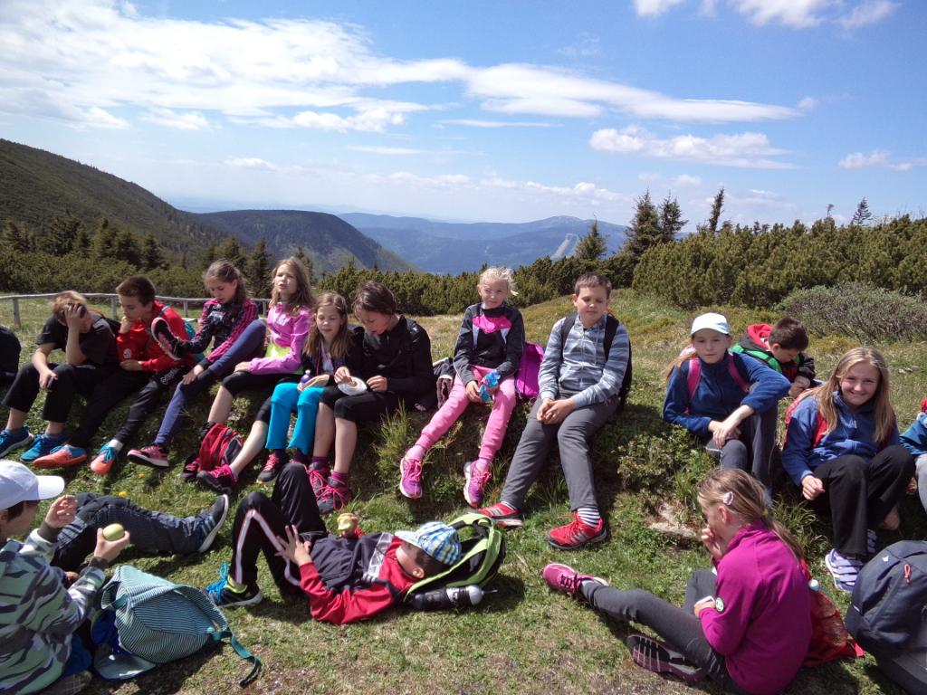 Děti zvládly bez problémů výstup z Růžohorek na nejvyšší vrchol České republiky a za pěkného počasí přešly celý hlavní hřeben až na Kolínskou boudu.