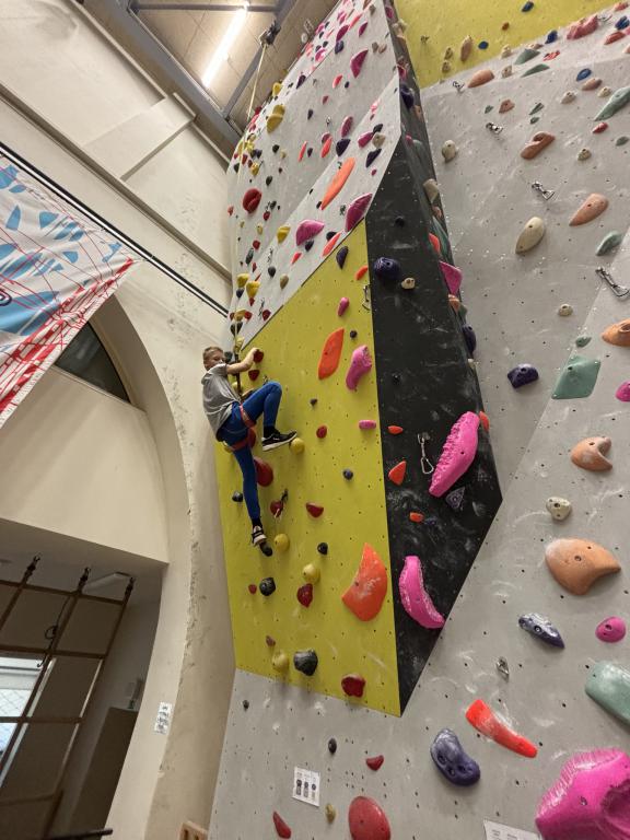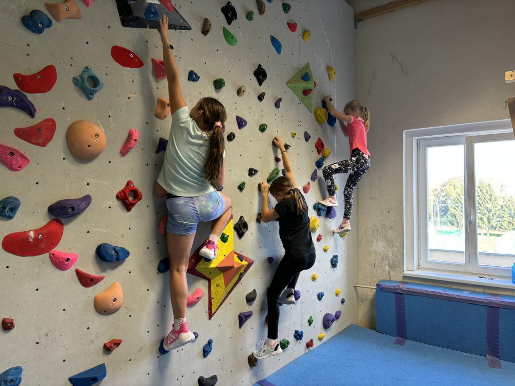 Rozdělení na skupiny postupně absolvujeme lezení s lanem na vysoké stěně, aktivity na boulderingové stěně, která je upravená na potřeby dětí a velmi oblíbený parkour. Při každé návštěvě si to tu parádně užijeme a těšíme se na opakování! Však už to v Sokolovně známe a zdejší zkušení instruktoři znají nás. ![]()