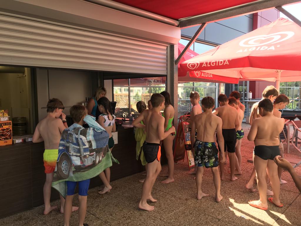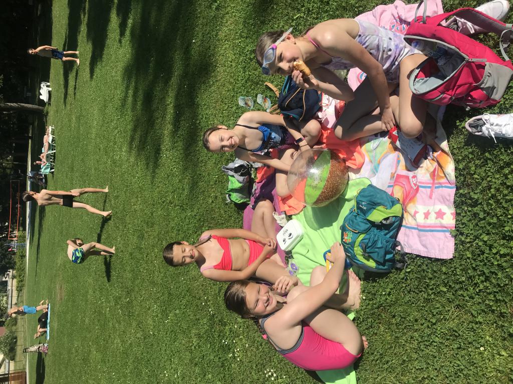 V pátek 18. 6. nás paní učitelka vzala na koupaliště. Teploty šplhaly opravdu vysoko a tak jsme lavice vyměnily za bazén smiley. Byly tobogány, blbůstky ve vodě i nanuky.