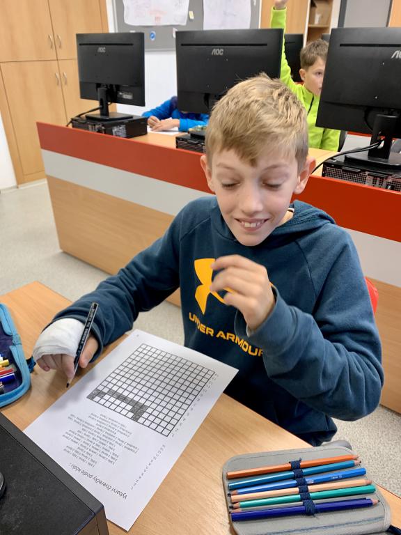 I v informatice jsme měli trochu Halloweenu. Podle kódu jsme vybarvovali "pixelové" obrázky.