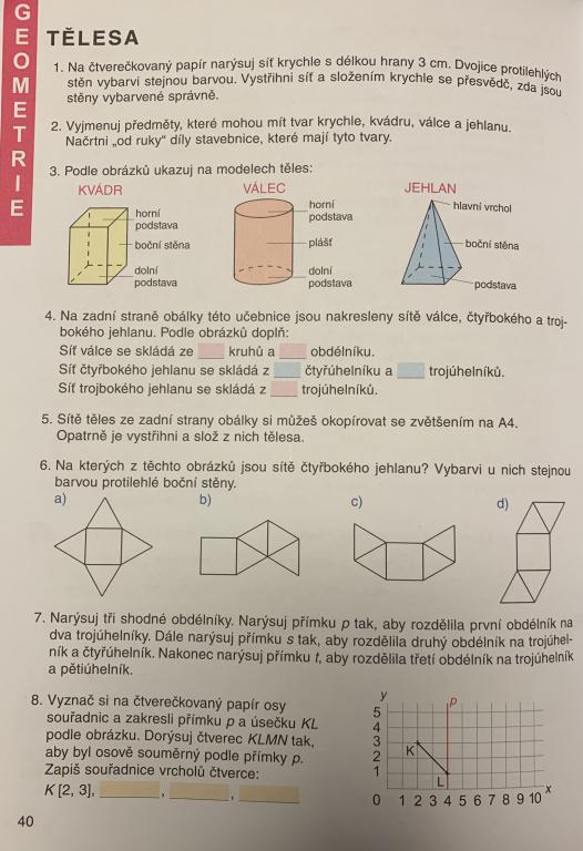 GEOMETRIE - UČEBNICE viz příloha strana 40 - TĚLESA do sešitu GEOMETRIE, prosím![]()