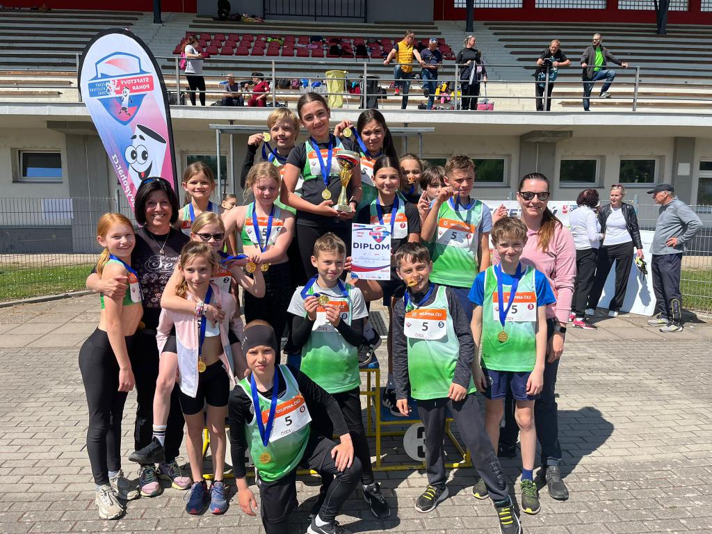 Týna, Anička, Viki, Jéňa a Ríša z našeho áčka – spolu s dalšími dětmi z naší školy – vyhráli krajské kolo štafet! Běželi jak správně seřízené superrakety a nechali za sebou i silné soupeře z Chrudimi a Cerekvice! yes