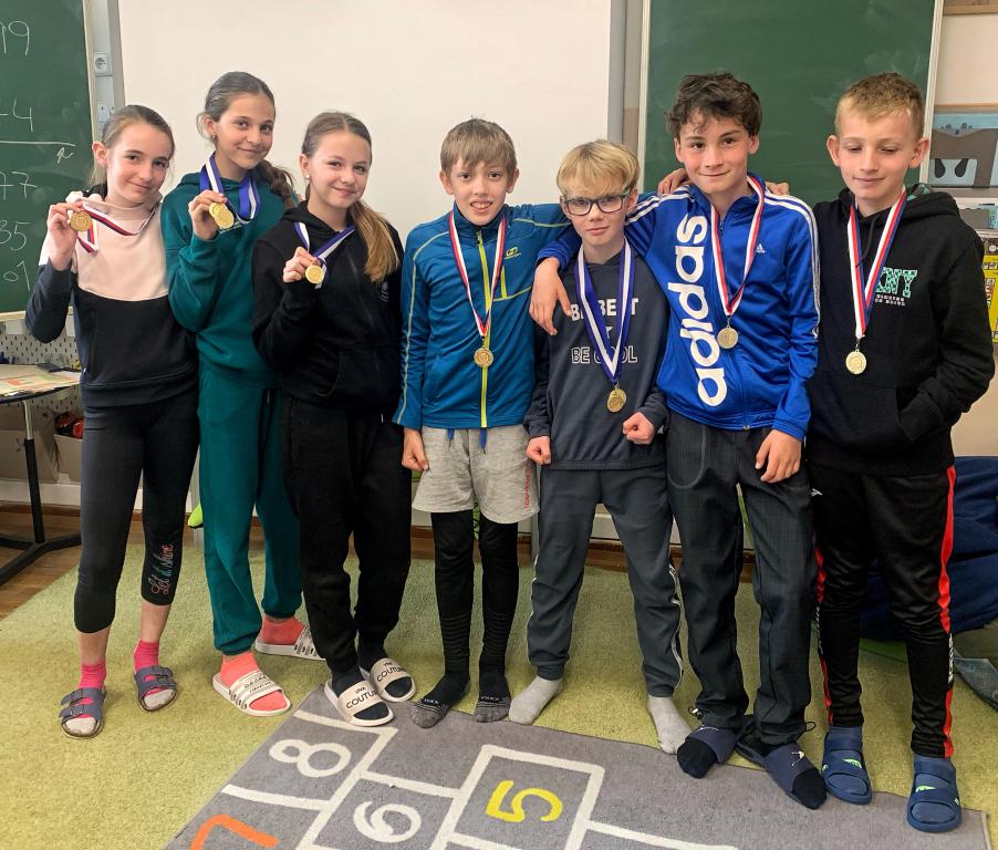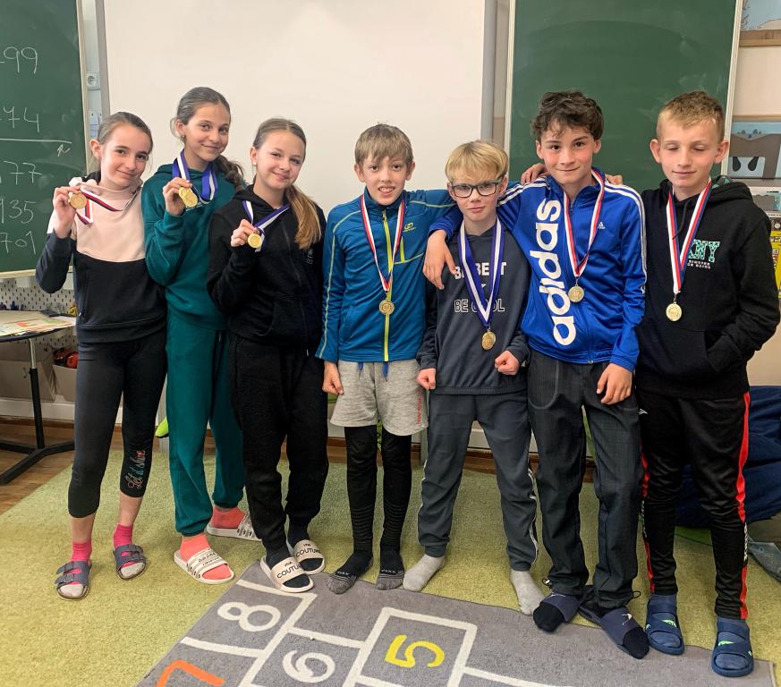 Rychlíci z našeho áčka se zapojili do ŠTAFETOVÉHO POHÁRU základních škol z celé České republiky. Nelča, Terka, Sam V. a Tom Ma. běželi v kategorii 4. - 5. tříd 8x 100 m a 8x 200 m. Krajské kolo spolu s dalšími dětmi vyhráli.