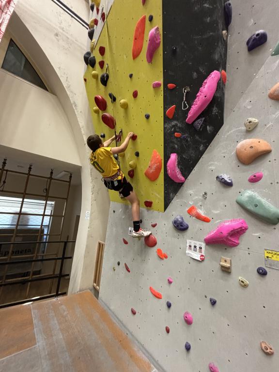 I letošní podzim patří pravidelným návštěvám horolezecké stěny. Během hodiny a půl se zdokonalujeme v parkuru, boulderingu a lezení na velké horolezecké stěně. Mnozí z nás překonávají své limity a vrchol velké horolezecké stěny byl už nejednou pokořen.