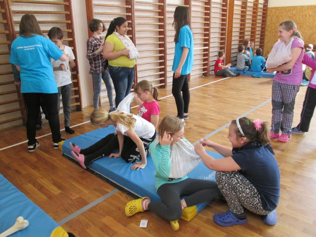 Ve čtvrtek 5.5. jsme si užili projektový den se Záchranným kruhem ve spoluráci se střední zdravotnickou školou. Žáci si osvojovali množství znalostí i dovedností, které mohou využít v případě náhlé mimořádné události. Seznámili se s náplní práce složek integrovaného záchanného systému a praktcky si vyzkoušeli společně se 4.C zdravovědu, což je zaujalo asi nejvíc. /Z.S/