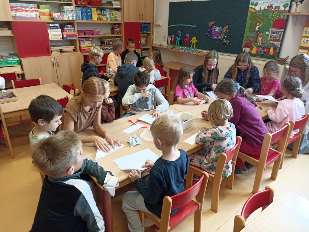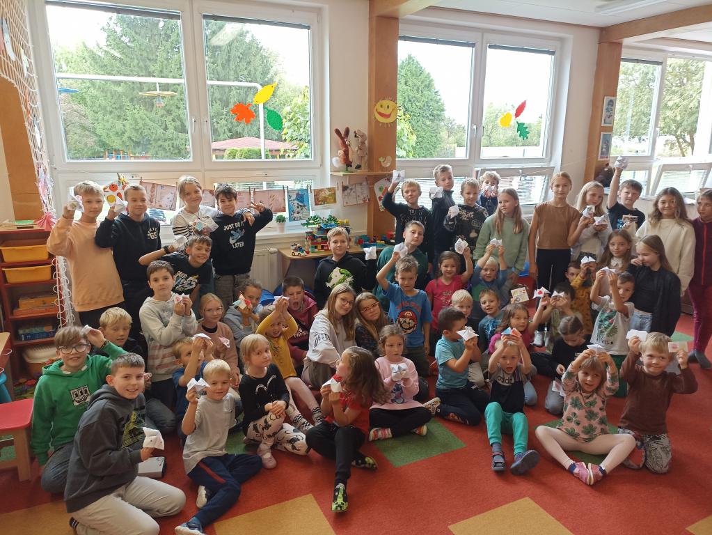 Tento školní rok budeme již tradičně spolupracovat s předškoláky z MŠ Raisova. V úterý jsme se za nimi vypravili. Připravili jsme si pro ně klapačky, které nám posloužily jako seznamovací prostředník. Pomohli jsme pak našim novým kamarádům vyrobit si svoji, kterou si pak mezi sebou mohli vyzkoušet. Bylo to moc fajn a my se těšíme na zážitky s novými kamarády.