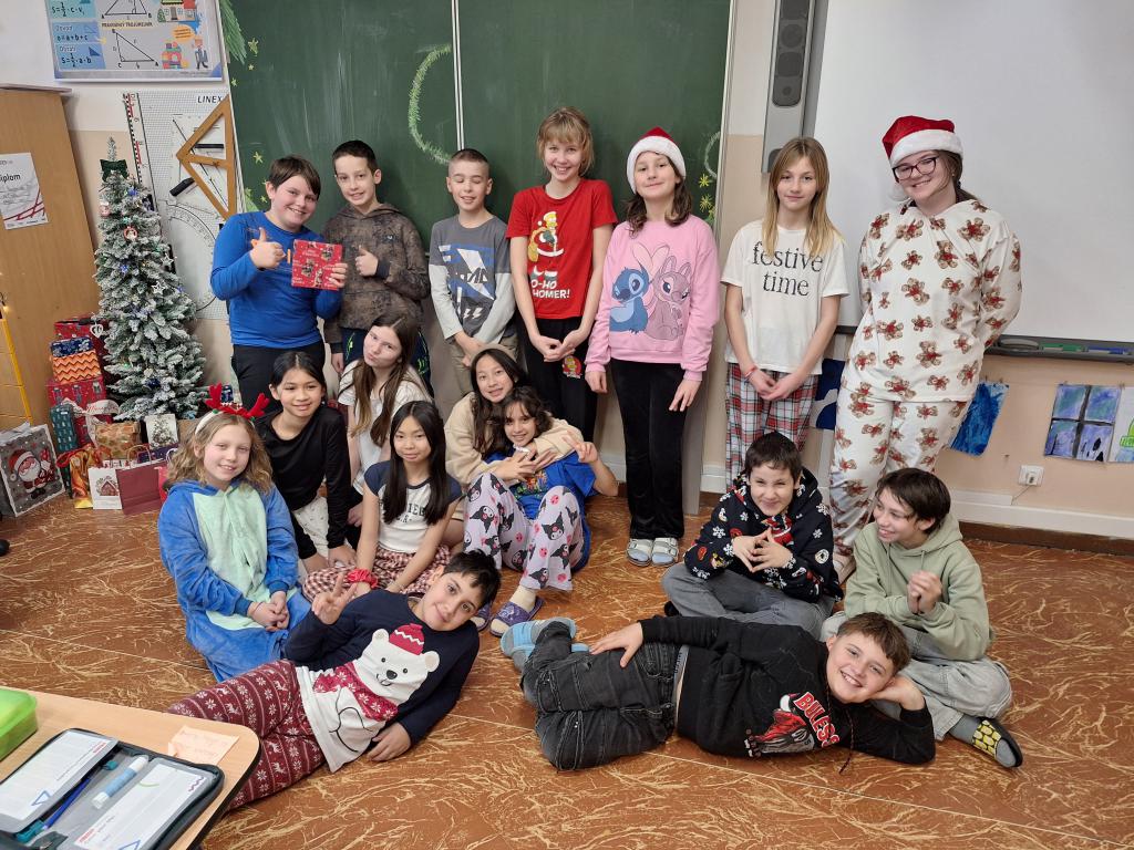 Prosinec byl u nás ve třídě opravdu kouzelný. Společně jsme si vyzdobili třídu, při výtvarné výchově i každé ráno v posledním týdnu jsme poslouchali vánoční koledy a navštívili jsme také vánoční koncert. Ten se konal v tělocvičně a naplno do nás vdechl vánoční atmosféru. Nechyběla ani vánoční besídka ve svetru a pyžamu. Každý dostal dáreček, ochutnali jsme cukroví a pustili si pohádku. Závěrem roku 2025 přejeme všem krásné a klidné Vánoce plné pohody a radosti. Teď nás čekají zasloužené prázdniny! Jupí!