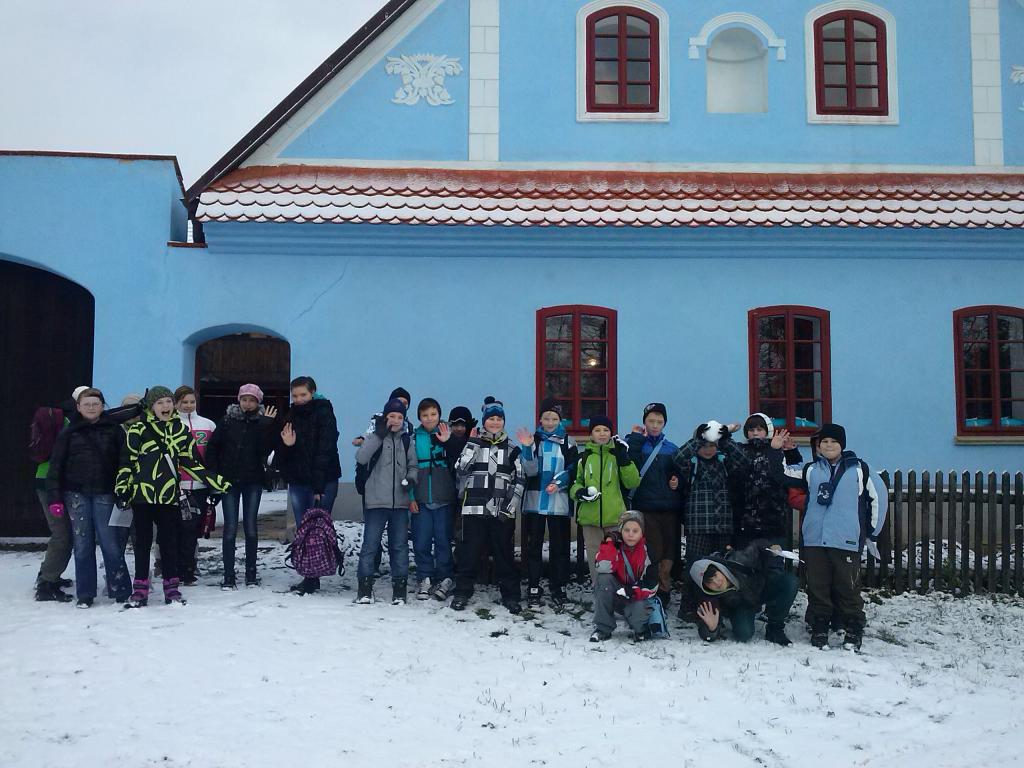 A tak jsme si se třídou v době čertovské vyjeli na výlet na Veselý kopec. Hned při příjezdu nás přivítal sníh, kterého jsme se nemohli nabažit. Kromě zimních radovánek, které nám byly tolik vzácné, jsme se ale dozvěděli mnoho zajímavých a poučných informací. Navštívili jsme několik chaloupek s různým programem. U dráteníka jsme obdivovali perníčky zdobené, v další chaloupce nám ukazovali techniku perníčků vytlačovaných do forem. Snad nejvíce jsme si zapamatovali, že lidé, kteří měli v místnosti málo místa, věšeli stromeček ke stropu, a že sekyra pod stolem neznamenala boj, ale kdo si na ni nohou sáhnul, tak utužoval svoje zdraví. Řetězy obtočené okolo stolu byly zase symbolem soudržnosti rodiny. A co jsme si vůbec nedovedli vysvětlit - v jedné malinkaté místnůstce se těsnala celá 5ti členná rodina. V posledním statku jsme si mohli vymyslet, co si necháme vepsat na ozdobičky a v závěru výletu na nás čekaly suvenýry. Výlet se vydařil a my doufáme, že se zase brzy na nějaký společně podíváme.