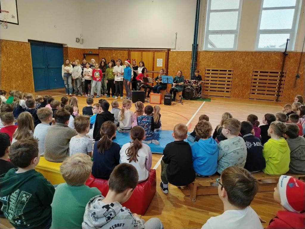 Ve středu 17. prosince proběhl na naší škole vánoční koncert školního pěveckého sboru pod vedením uměleckých vedoucích Ivany Sobolíkové a Martiny Hezké. Žáci 5. až 8. ročníků si pro mladší spolužáky z 1. stupně připravili pásmo vánočních písní.