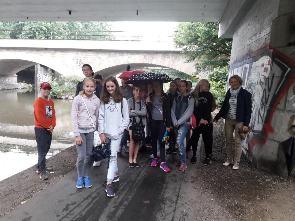 Den před vysvědčením jsme s deštníky cestovali po Pardubicích. Pod střechami jsme se schovávali před deštěm, hráli slovní hru a ochutnali přinesené občerstvení.