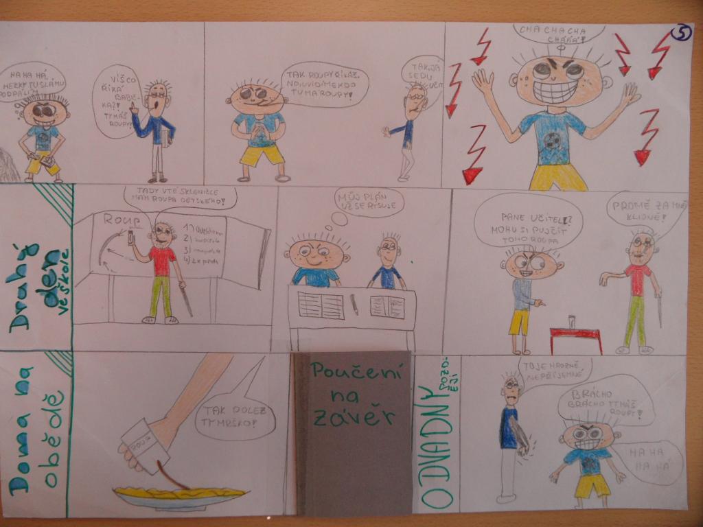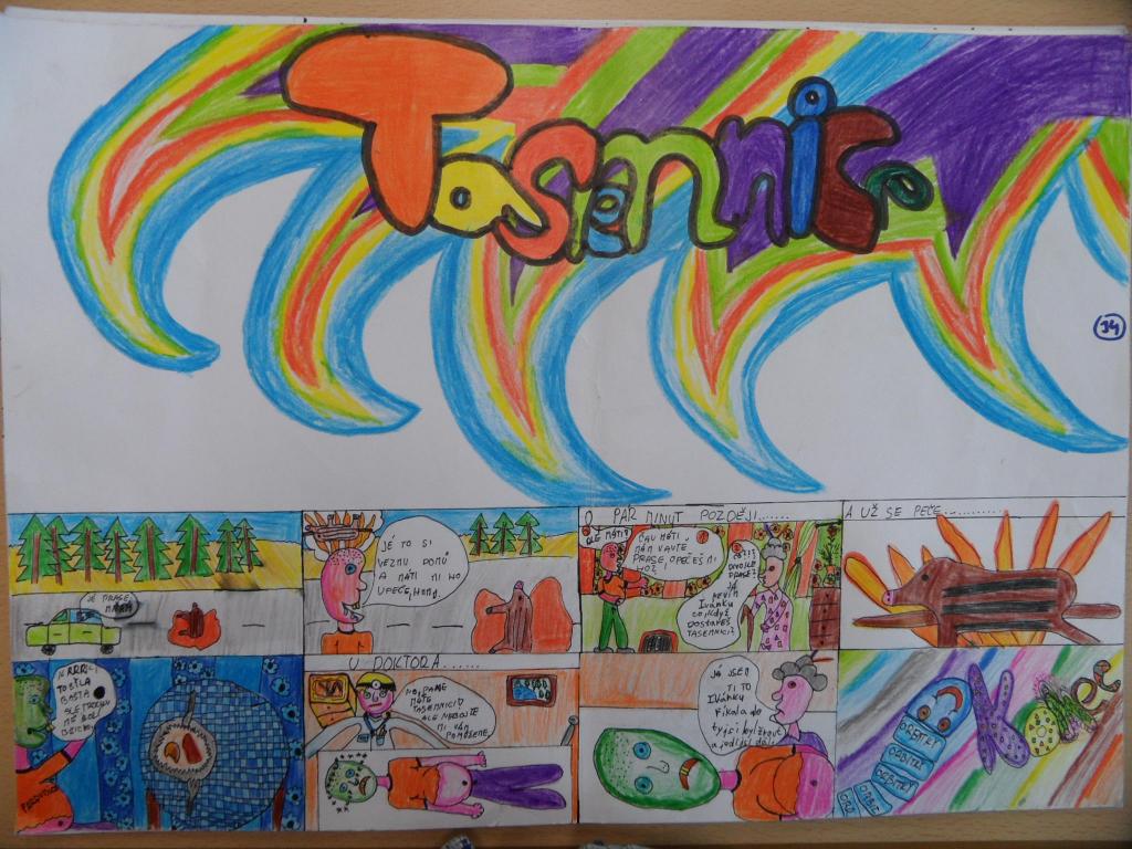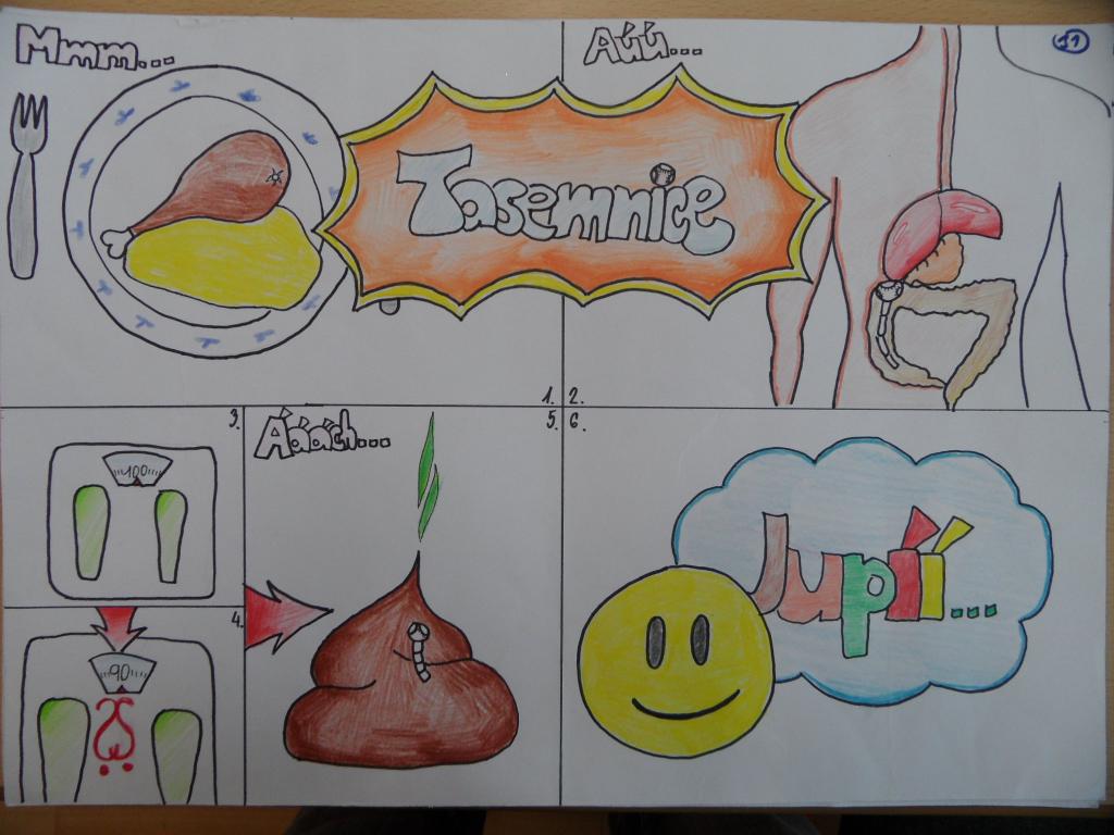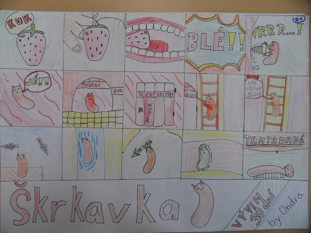 Asi nikdo z nás by v těle nechtěl mít nějakého nepříjemného parazita. Už jenom český výraz cizopasník zní hrozně. Mít tasemnici, roupy nebo škrkavky, tak to už vůbec NE. Vaším úkolem bylo zachytit v obrázkovém příběhu, jak se nám takový parazit může dostat do těla, jak se vyvíjí, jak nám škodí, jak se jim můžeme bránit atd.. Hodně moc jste mě překvapili, výborné zpracování, parádní nápady a hlavně dobře zkratkovitě vystižné. Opravdové komiksy. U mě dobrý, tzn. 43x za jedna. Vyfotil jsem deset vámi nejlépe hodnocených komiksů a přidávám celkovou tabulku, ve které se každý najdete, ale jenom pod číslem, žádná jména. Každý poznáte svoji práci a můžete se porovnat s ostatními.