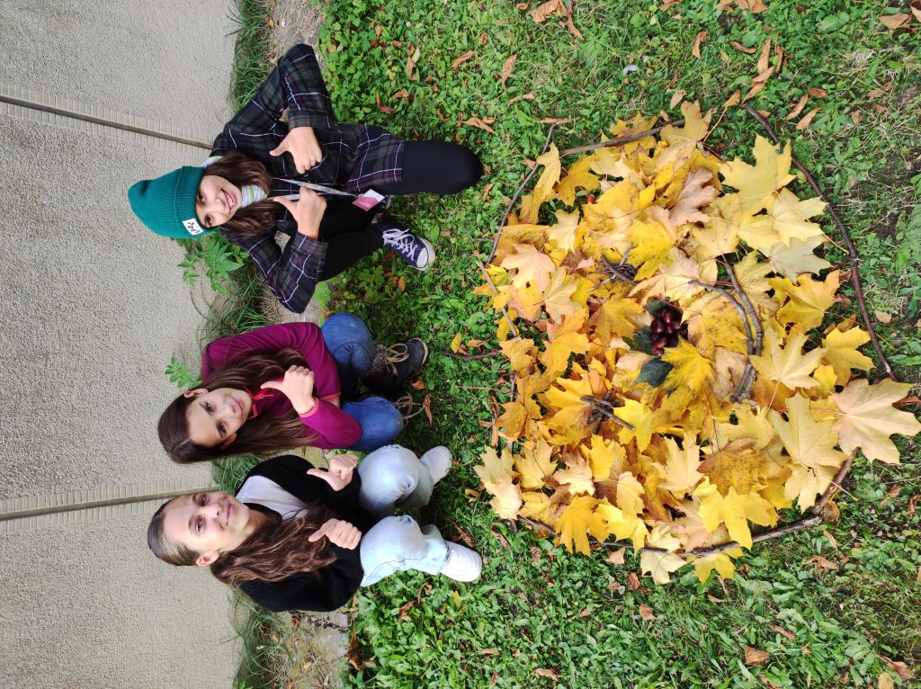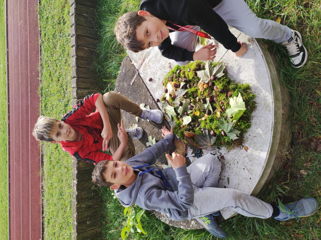 V pondělí, den před Halloweenem, jsme využili jeden z posledních krásných podzimních dní a na jednu hodinu VV jsme vyrazli na školní zahradu. Tvořili jsme různé fantazijní práce z přírodních materiálů. Hodina se povedla, děti byly nadšené, že nemusely sedět v lavici a paní učitelka zase z toho, že je nemusela okřikovat, aby ztišily hlas.