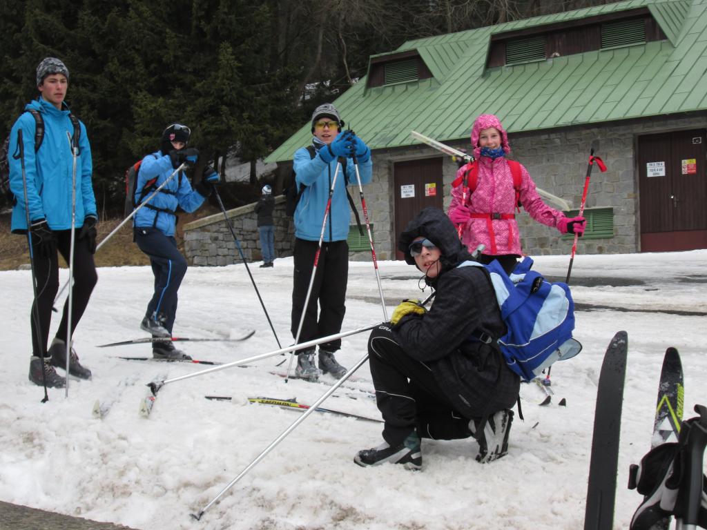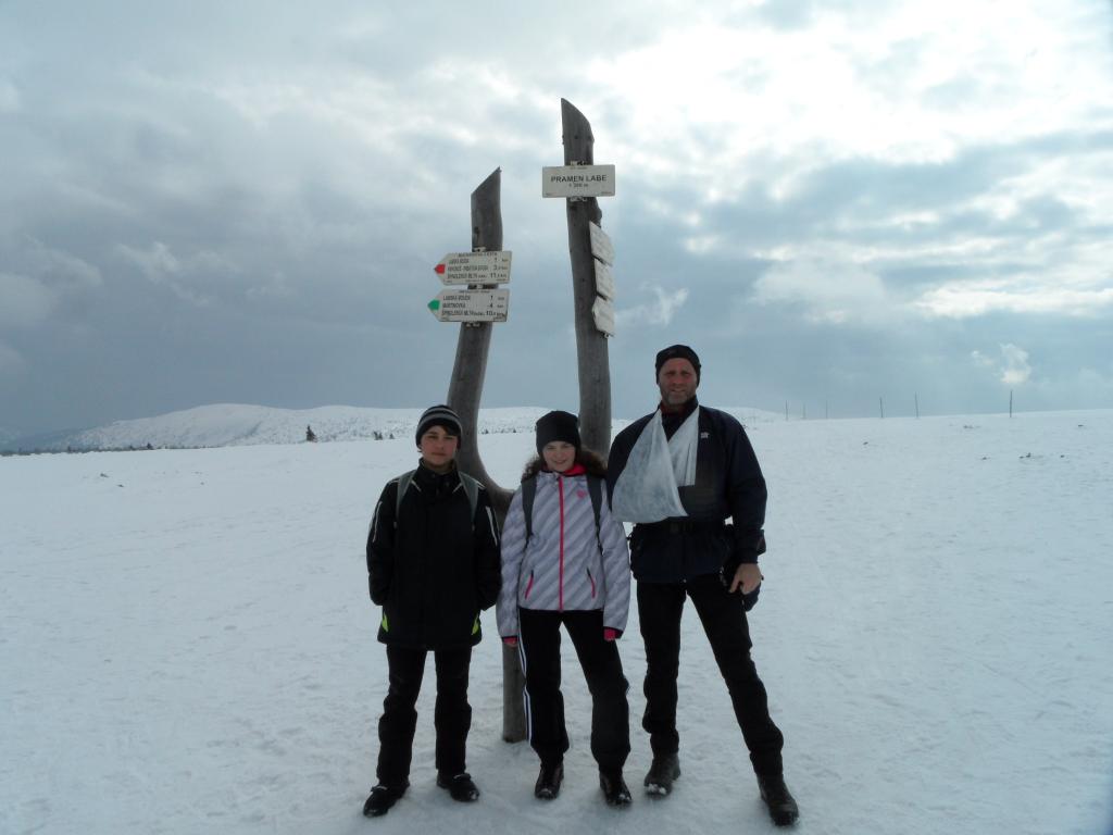 Obávaný celodenní výlet na běžkách se změnil v jednu velkou legraci a všichni se přesvědčili, že by ujeli třeba i 100 km. Trasa: Jilemnická bouda, hřeben Krkonoš, Vrbatova bouda, Zlaté návrší, Harrachovy kameny, Vosecká bouda, Sněžné jámy,pramen Labe, Labská bouda a zpět. Byli jsme rozděleni na tři výkonnostní skupiny a trasa se až tak nelišila. Cestou jsme vypili všechny čaje a pitíčka, snědli řízky a tunu sladkého a výlet jsme přežili ve zdraví a to i duševním. Po dojezdu jsem slyšel, jak děti kilometry výletu už násobí, takže ve škole už budou vyprávět, že jsme ujeli 100km ve vánici a bez jídla a pití , a že půlka z nás měla omrzliny. Ale to je normální asi jako u rybářů.