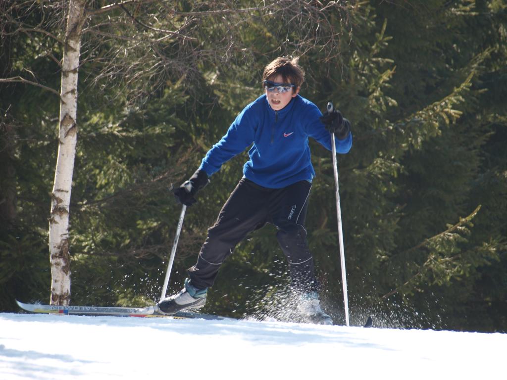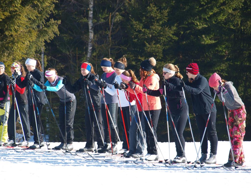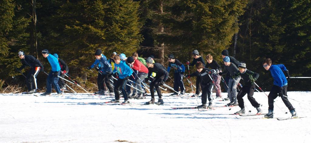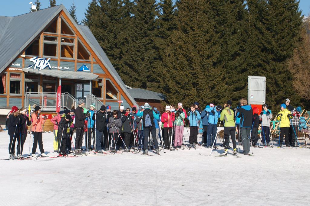 V pátek dopoledne jsme na přání dětí uspořádali běžecké závody na místním lyžařském stadionu. Jeli jsme závod s hromadným startem. Nejdříve odstartovali všichni chlapci a pět minut po nich děvčata. Styl nebyl určen, většina bruslila, ale několik závodníků jelo, jako když stěhuje lodě. Bylo nejkrásnější počasí za celý týden - azuro. Děti závodily s chutí. V mužské kategorii kralovali sedmáci s vítězem Jardou Koubou, mezi ně se vklínil nejlepší šesťák pan Janda, s kterým byla sranda. Děvčata překvapila, k nelibosti starších se o vítězství nenechala připravit Nikola Mandysová (dobrá práce Vašku) a bezpečně stříbrná Eliška Hezká (dobrá práce Bořku). Moc nás potěšilo, že většina celou trasu závodu odbruslila. A pak už jsme se jenom pochválili, jak jsme soutředění zvládli a naskákali do autobusů a hůrá domů.