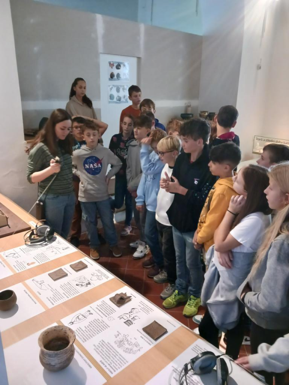 Začátkem listopadu měly šesté ročníky možnost zpestřit si výuku dějepisu návštěvou Východočeského muzea v Pardubicích. Zde pro nás byl připraven v archeologické expozici Proti proudu času výukový program s názvem Cesta do pravěku. Vydali jsme se tak na dobrodružnou cestu od sběračů a lovců mamutů přes dobu bronzovou až k době osídlení našeho území Kelty. Dozvěděli jsme se spoustu nových ale i pro nás známých informací o životě pravěkých lidí jako je obživa, pohřbívání či vyrábění uměleckých předmětů. Nakonec jsme si zkusili rozluštit šifru psanou keltskými runami.