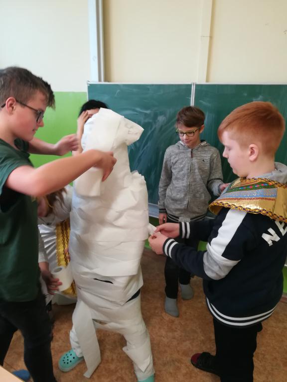 Při poslední hodině DE jsme se přesunuli do starověkého Egypta. Pronikli do tajů mumifikace a naučili se psát své jméno egyptským písmem hieroglyfy.