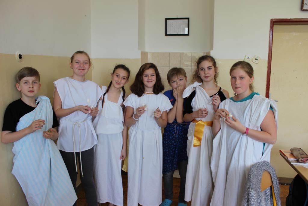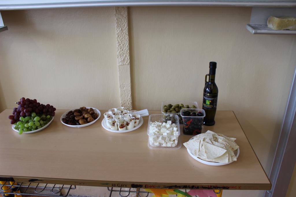 V pátek 21. 4. jsme společně v dějepisu uzavřeli kapitolu týkající se starověkého Řecka. Všichni se zapojili do vypracování tajenek i skládačky a poté zavítali k ochutnávce řeckých pochutin. Objevovali jsme chuť zelených a černých oliv, vyzkoušeli sýr feta, hroznové víno, datle a fíky. Nechyběl řecký jogurt s medem a mandlemi nebo placka pokapaná olivovým olejem. Byla to velmi příjemně strávená hodina a už se těšíme na to, co přinese další kapitola o Římu.
