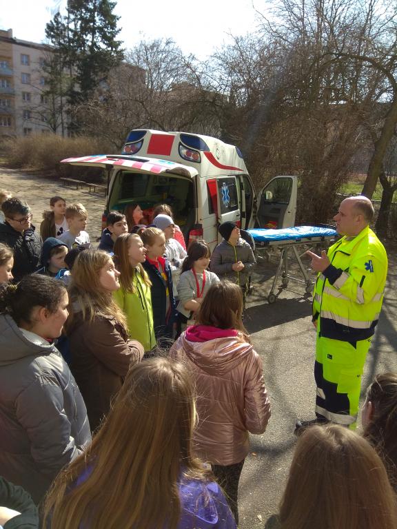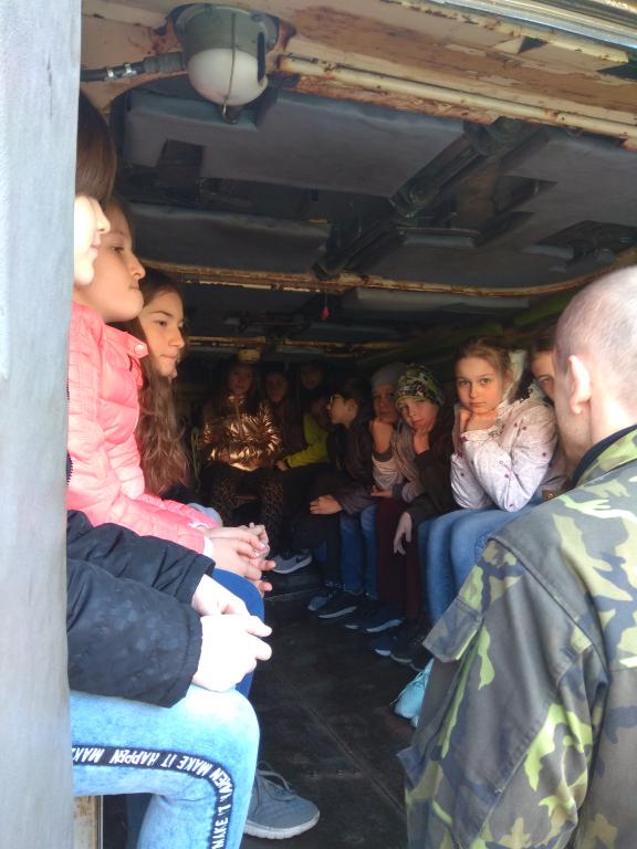 Minuly tyden nas navstivili vojaci s obrnenym transporterem a zachranari. Vyzkouseli jste si, jak se sedi vojakum pri ruznych akcich a take rychly unik z vozu. To, co jste si povidali uvnitr, mi zustalo tajemstvim, ale uzili jsme si to. Nikomu se nastesti nepodarilo nastartovat a odjet:) Uz vime, jak to funguje pri zachrannych akcich a jak se zachovat pri ruznych zdravotnich potizich. Prikladam par fotek. I. Sobolikova