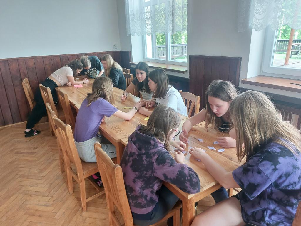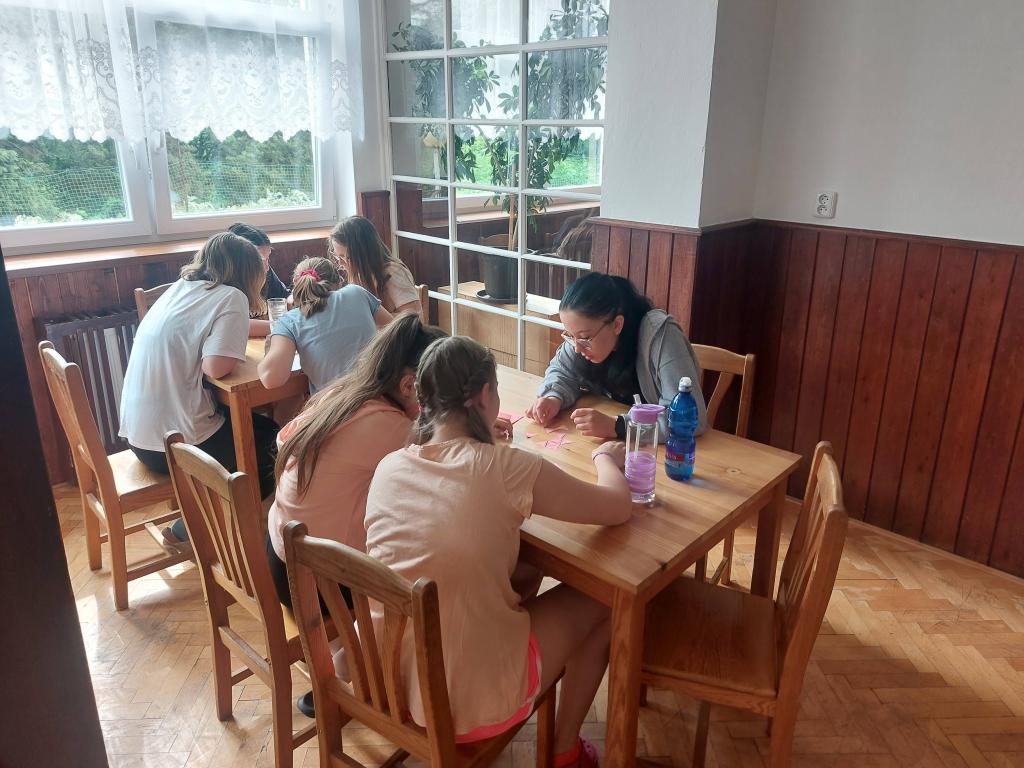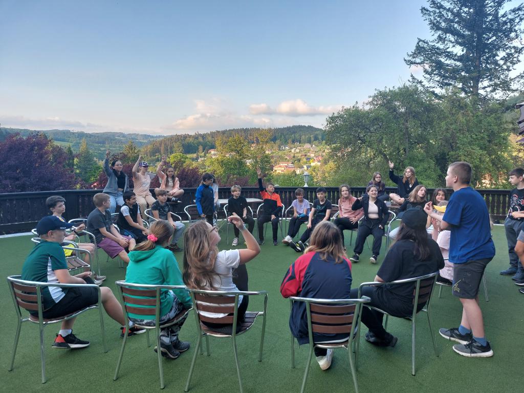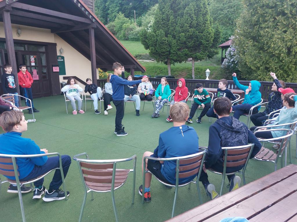 V úterý naše plány zhatilo počasí, a proto jsem uspořádali turnaj ve skládání Trimina. Žáci se utkali hned v sedmi znalostních kategoriích (pohádky, převody jednotek, matematika, zeměpis…). Pro vítěze čekaly drobné sladké odměny. Odpoledne se počasí umoudřilo, a tak jsem se vydali na malou procházku po Malé Skále, kterou jsme zakončili hraním pohybových a tanečních her.