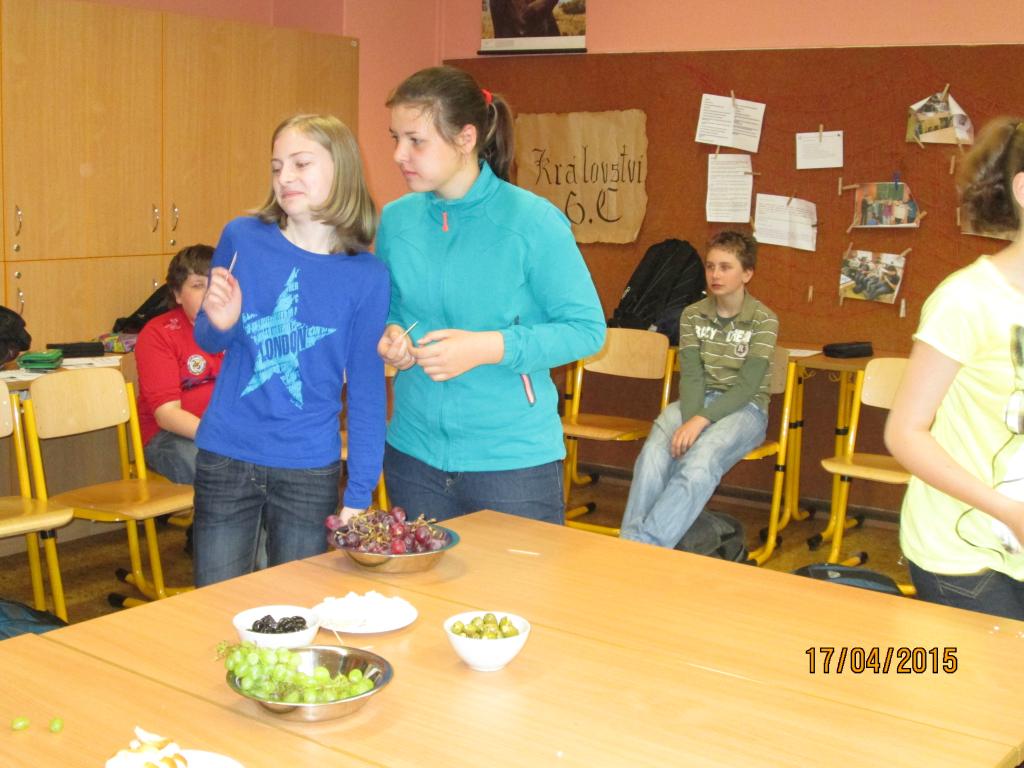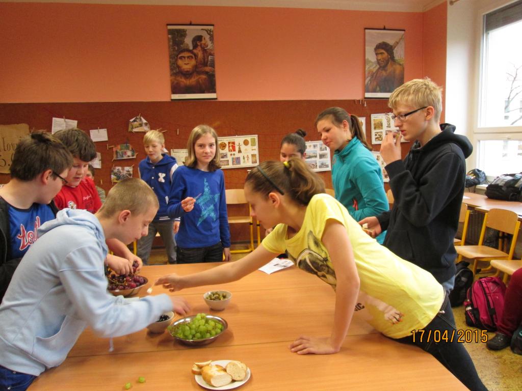 V poslední hodině dějepisu věnované řecké kultuře, odkazu a opakování jsme si vystrojili řeckou hostinu. Na naší tabuli bylo hroznové víno, olivy, nekvašený chléb i řecký sýr fetta. Vrhli jsme se na pochutiny s neskrývaným apetýtem, i když například Řeky velmi ceněné olivy nepatřily k těm, co by zmizely ze stolu mezi prvními :o) Chuťový zážitek jsme umocnili vyplněním pracovních listů se zákeřnými otázkami (princip Kalokagathia, kreslení řeckých sloupů, Sokratovo: Vím, že nic nevím)a zodpovědně prohlašujeme, že se nám Řecko dostalo pod kůži (alespoň do žaludků).