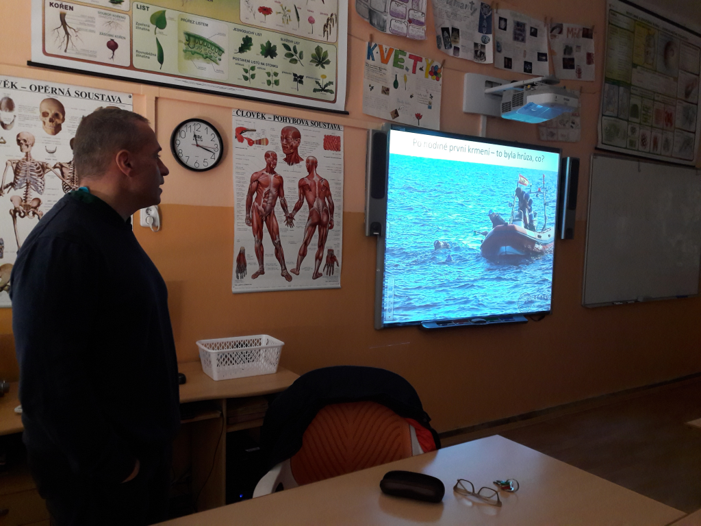 V pátek 10. ledna naši hodinu zeměpisu zpestřil svým poutavým povídáním pan Aleš Rucký, dálkový plavec a přemožitel Gibraltarského průlivu z dubna 2018. Od něho jsme se dozvěděli o tomto místu podrobnější informace. Byli jsme seznámeni s pravidly přeplavání, dozvěděli jsme se, jak probíhá občerstvování při plavání a nechyběly ani osobní zážitky. Na naše zvědavé otázky nám pan Rucký ochotně odpovídal.