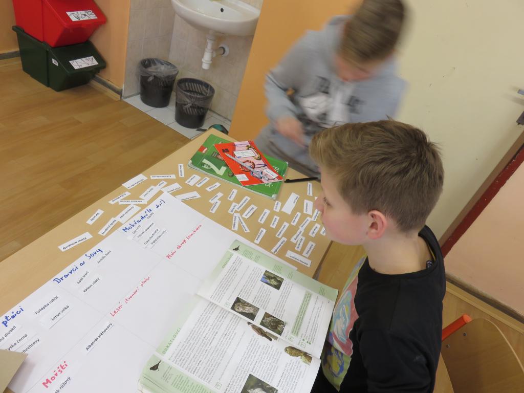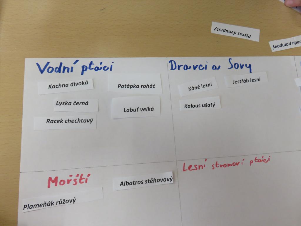 Pozor, je to jen nadpis, kterým chci říct, že ptáky jsme probrali ze všech možných úhlů a celé druhé pololetí se budeme učit o rostlinách. Od příští hodiny nás čeká botanika. Přidávám fotky jednoho z posledních opakování ptáků, kdy jsme se pokoušeli zařazovat ptáky do biomů anebo je zařazovat podle stavby těla nebo způsobu života. Pomůcky pro tuto ptačí hru jsme si vytvořili sami, za to patří dík 7. A. Přidávám fotku hnízda rehků, které jsem měl čest sledovat při krmení mláďat.