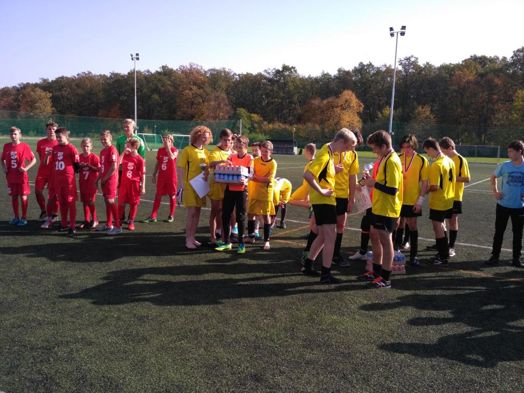 Co to je za nesmysl, ten nadpis? Jak to bylo doopravdy? Zúčastnili jsme se okresního přeboru ZŠ v malé kopané, hrálo celkem 13 škol včetně mimopardubických. Např. Holice, Opatovice, Sezemice, Dašice, Přelouč. Vyhráli samozřejmě fotbalisté z fotbalové školy v Ohrazenicích, kteří si s každým soupeřem hráli jako kočka s myší. Na cestě do finále jsme drtili Bohdaneč, Veverkovce, Sezemice, Dubinu a Štefánikovku, proto je v nadpisu spíše zlatí, protože jsme byli první z nefotbalových škol. Na fotkách určitě poznáte své spolužáky, kterým ještě jednou gratuluji k úspěchu a děkuji za příkladnou reprezentaci školy. Třešničkou na dortu byl finalový gól Jakuba Šmída do sítě Ohrazenic.