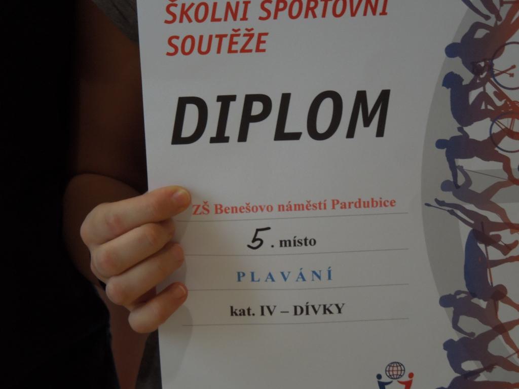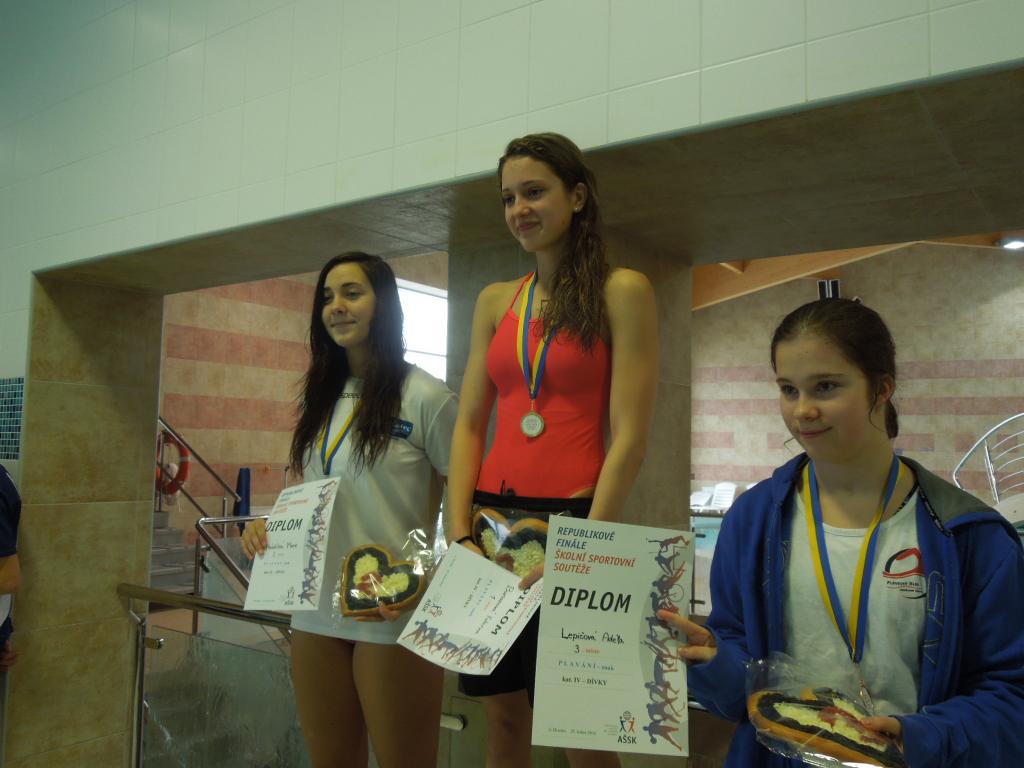 V pondělí 25.ledna v 5,40 hodin za nepříznivého počasí nasedalo do mikrobusu šestičlenné družstvo dívek.Naše cesta směřovala do Jindřichova Hradce na republikové finále ZŠ v plavání.Konkurence byla veliká a pro naši školu je obrovským úspěchem 5. místo v republice. Tým tvořily žákyně z 9.A - Kateřina Burianová, Barbora Štíková, Lucie Miřejovská, Alexandra Urbanová a Markéta Buderová. Pětici doplňovala Eliška Novotná z 8.A. Kateřina Burianová si doplavala v discilpíně 50m znak pro zlatou medaily- nejlepší závodnice v této disciplíně.